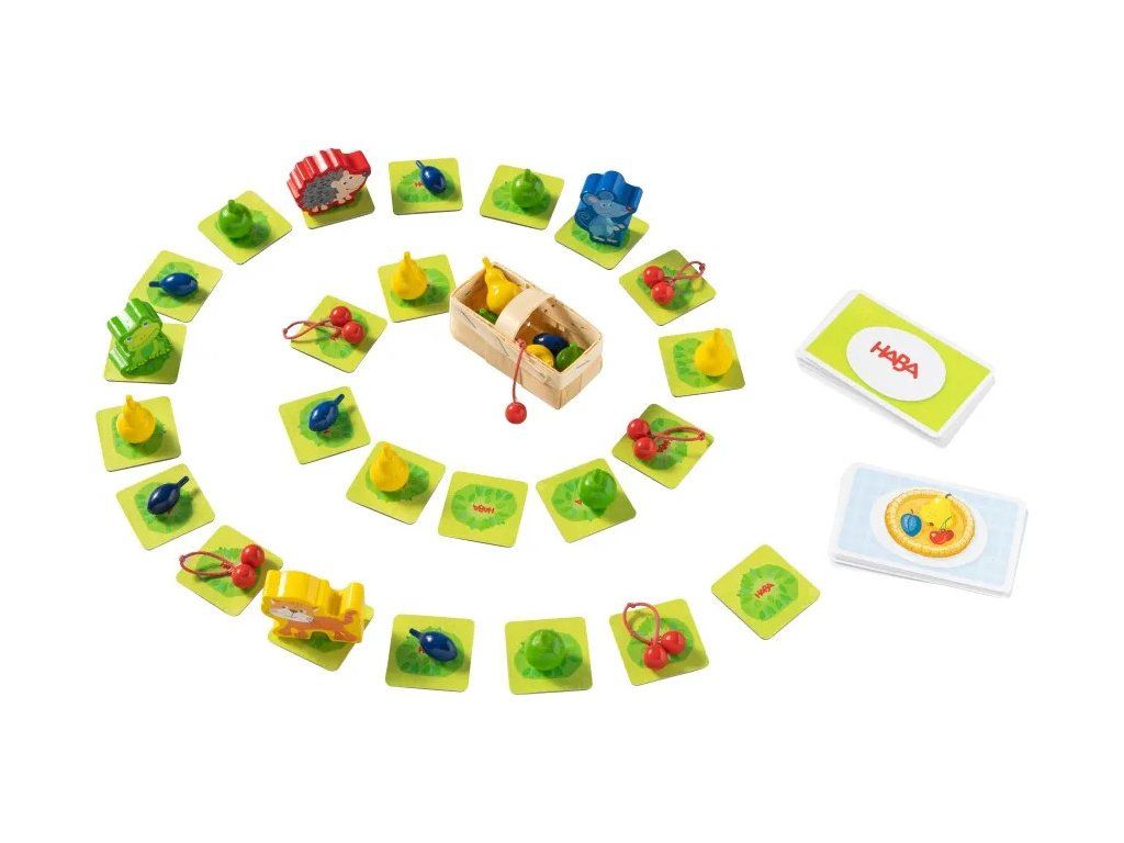 Děti si vyzkouší různé herní principy – pexeso, karetní, hmatové i kostkové hry – a rozvíjejí přitom jemnou motoriku, koncentraci, postřeh i základní početní dovednosti. Kromě klasické kooperativní hry „Ovocný sad“ najdou v sadě také další napínavé varianty, například závod o nejhezčí ovocný dort nebo honičku se zvířecími kamarády.