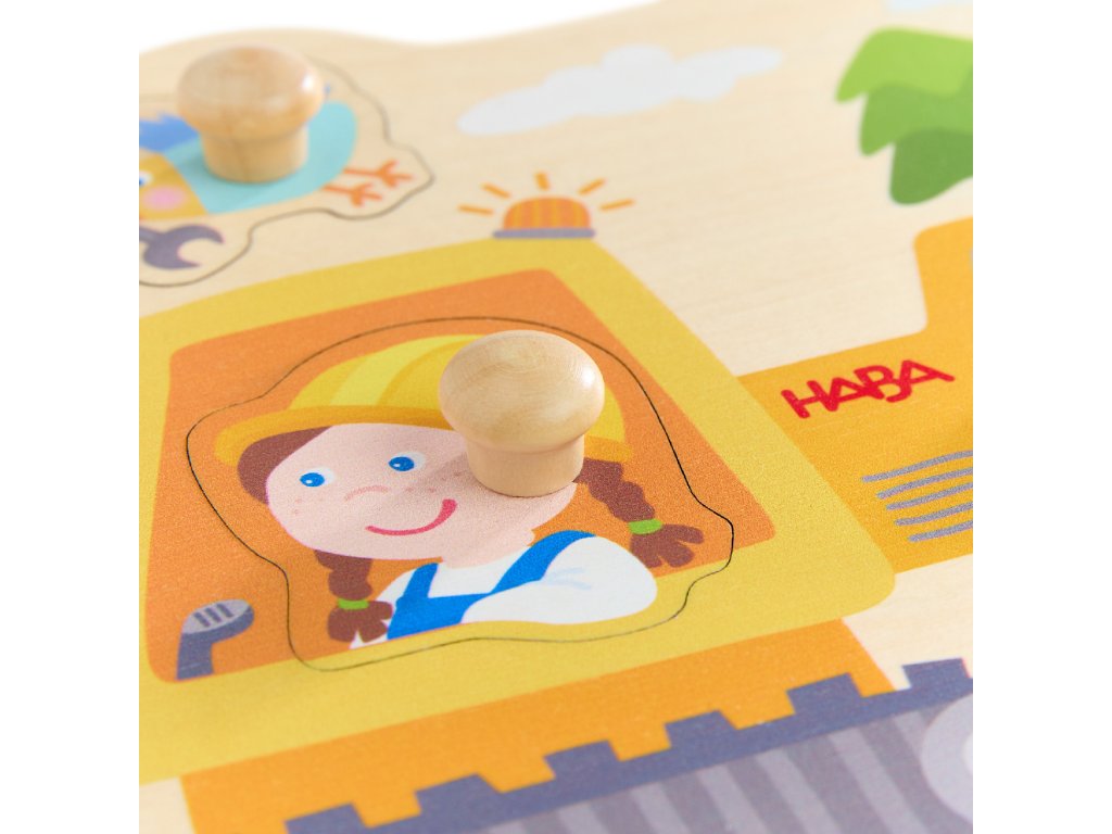 Veľké dieliky s dobre uchopiteľnými drevenými úchytkami uľahčujú skladanie a prinášajú deťom rýchly pocit úspechu.