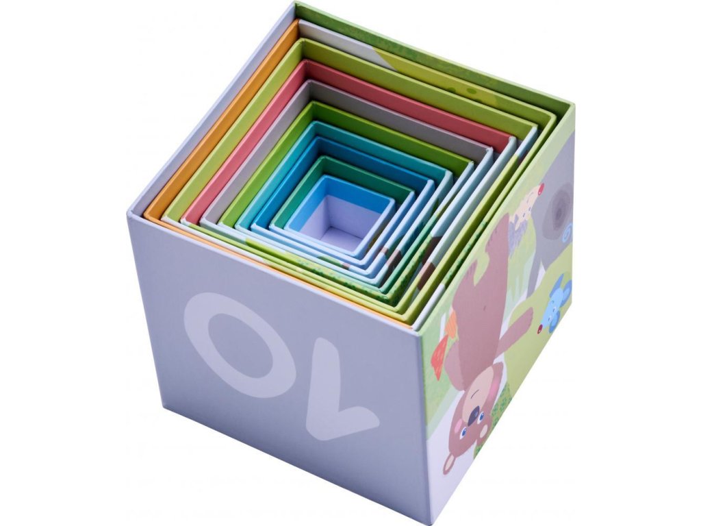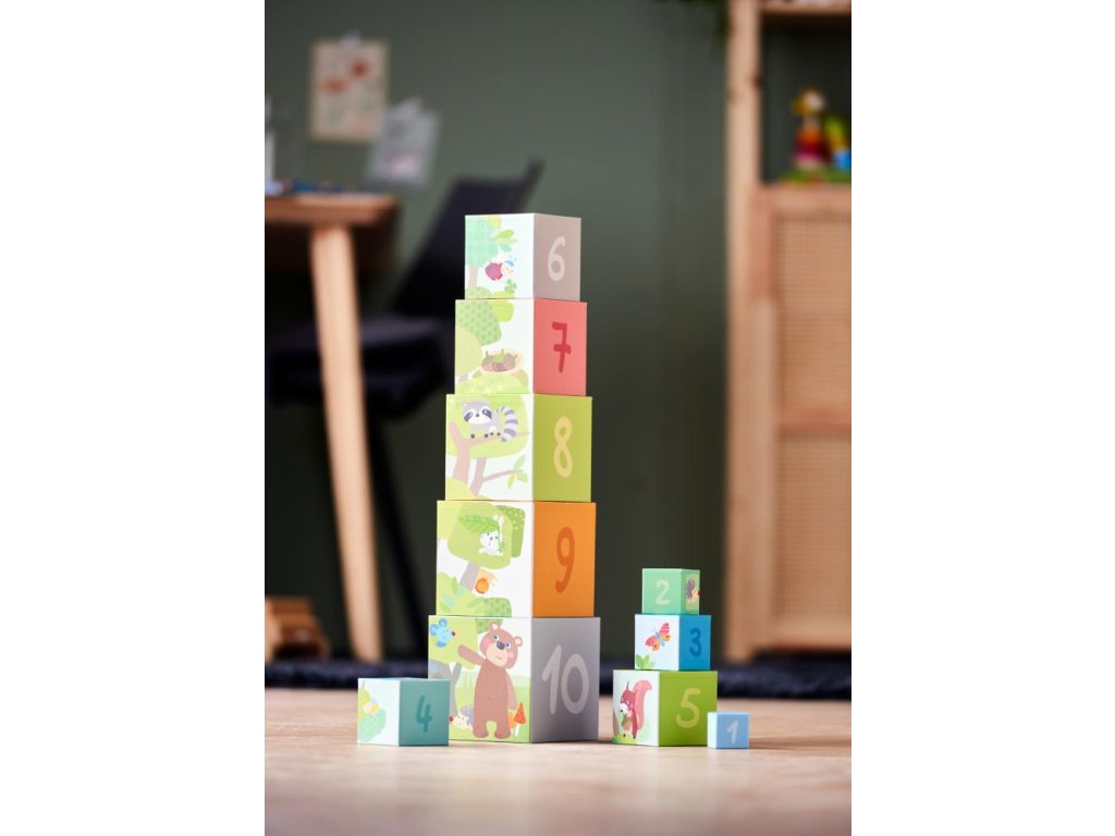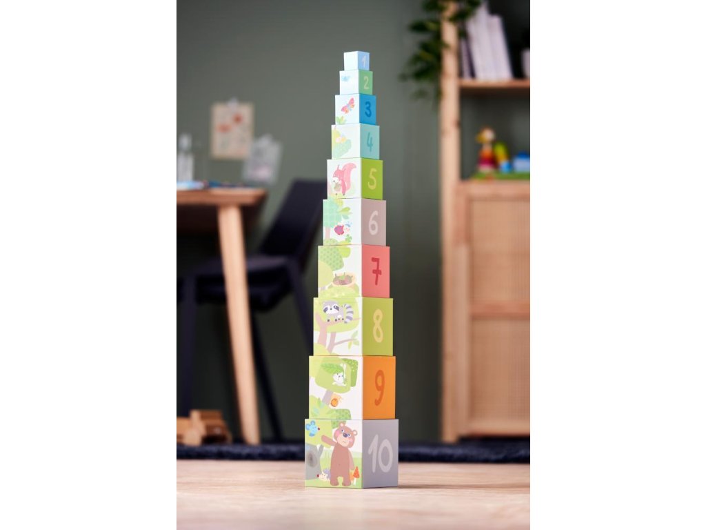 Na vrchu každého dielu je číslo od 1 po 10. Hračka umožňuje mnoho herných variantov - stavanie na seba, stohovanie dovnútra a vykladanie pyramídy, ukladanie podľa veľkosti na seba alebo vedľa seba.