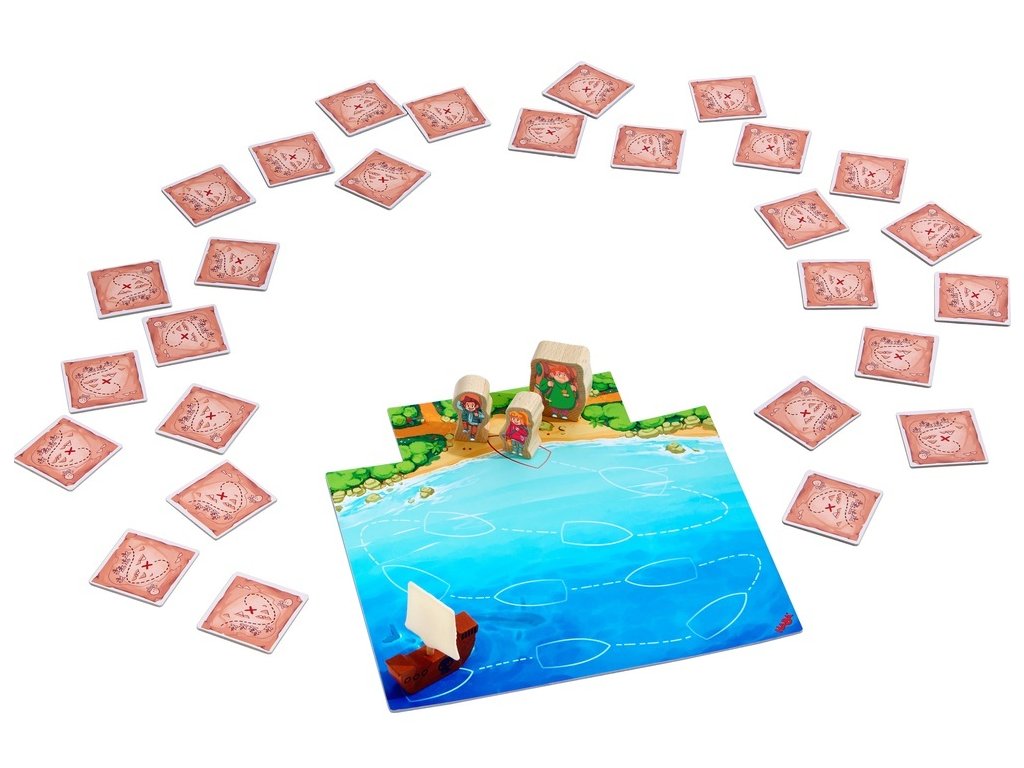 Hra obsahuje: 28 herných kariet, 2 ks hracích dosiek, 3 dobrodruhovia, 1 pirátska loď a návod na hru.