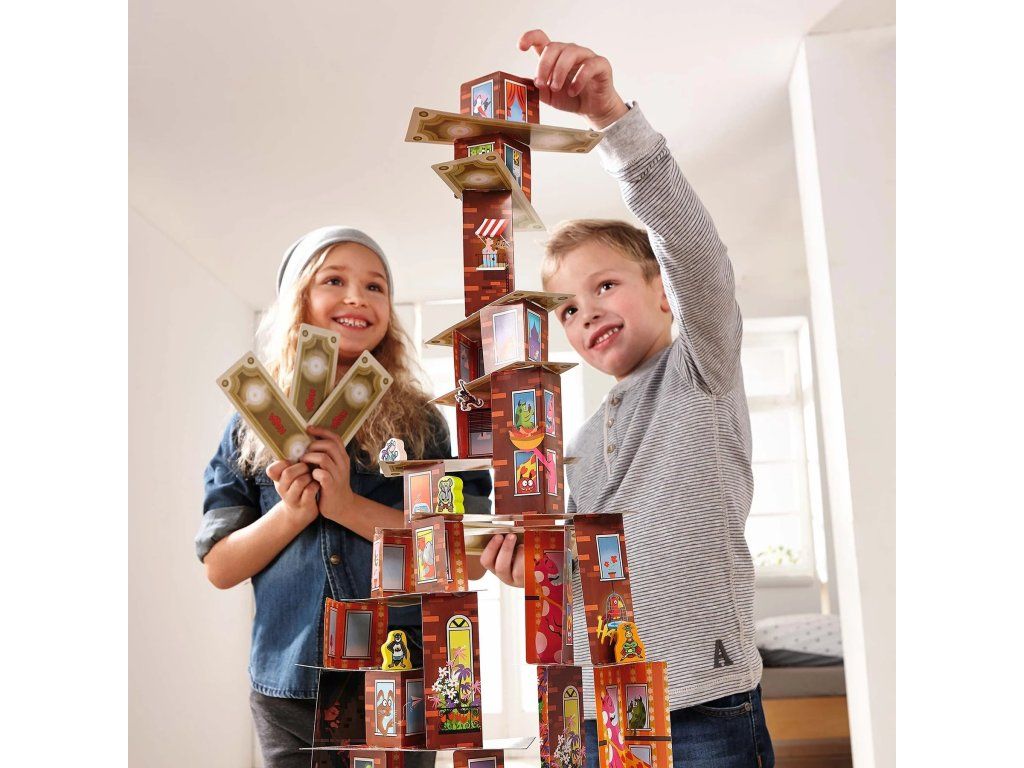 Postavte si veľkolepý 3D kartónový mrakodrap. Dve steny rôznych výšok vytvárajú vratké vzrušenie. Hráči môžu dokonca začať z viacerých základov a spojiť veže mostami.