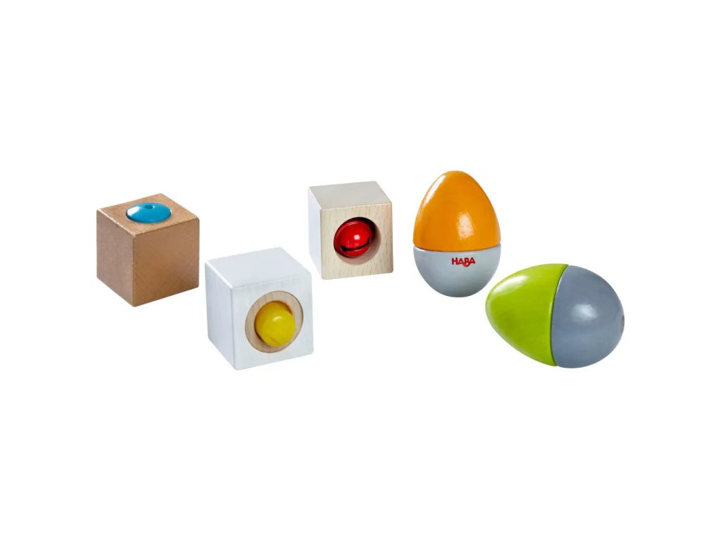 Haba Súprava hudobných nástrojov - akustické kocky a hrkajúce vajíčka