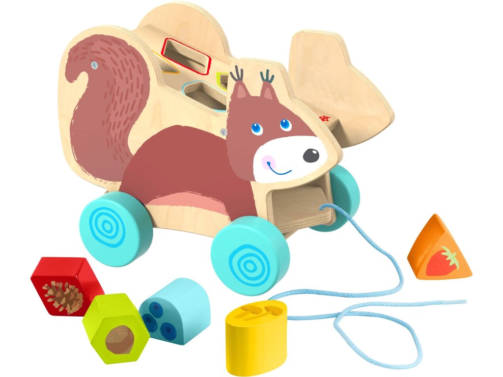 Haba Ťahacia hračka s vkladacími tvarmi - veverička
