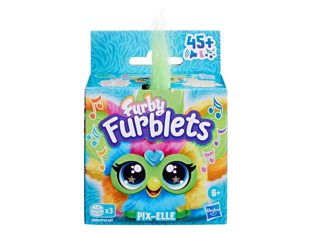 Stlačte tlačidlo srdca Furbyho Furblet Game on Gamer a budete počuť Pix-Elle hrať svoje vlastné jedinečné melódie v štýle videohier. Malí plyšoví kamaráti Furby s neuveriteľne výraznou osobnosťou! Každý zo šiestich Furblets má svoj jedinečný hlas a charakter zodpovedajúci hudobnému štýlu, ktorý reprezentuje. Furblets majú cez 45 zvukových reakcií a dokážu harmonizovať, spoločne spievajú piesne a interagujú s veľkou hračkou Furby! Výška plyšáka 5 cm. Prevádzka hračky na 3 LR44 batérie (sú súčasťou balenia). Rozmery balenia: 12,7 x 9,5 x 5,3 cm. Vek: 6+
