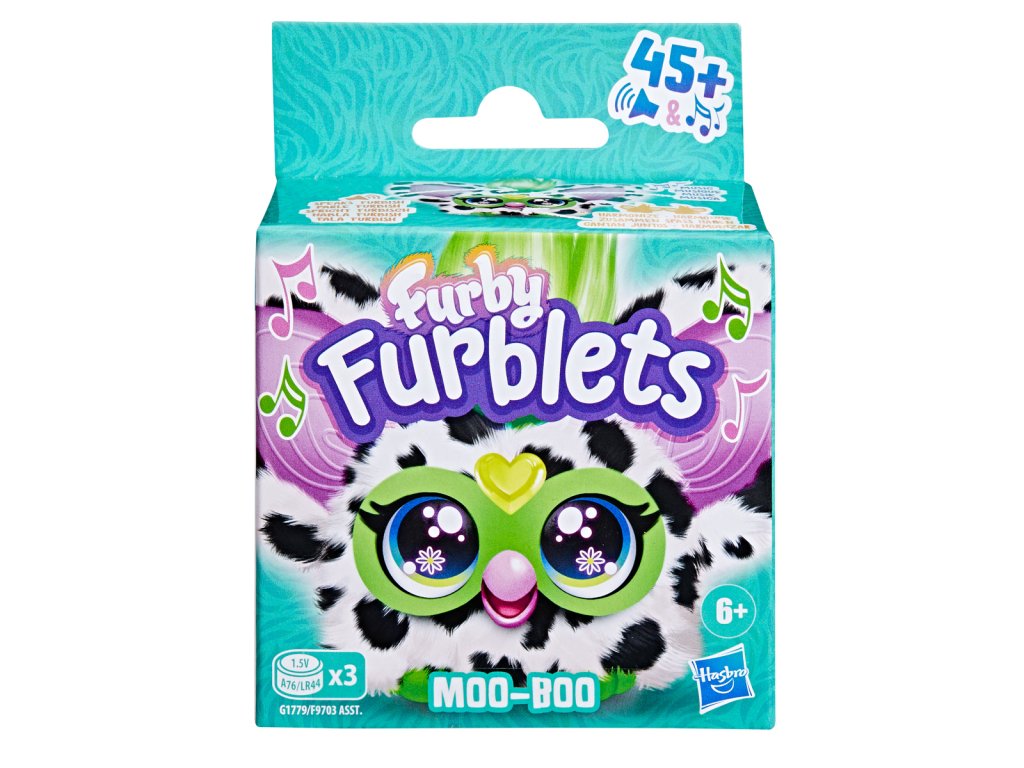 Roztomilý Furby Furblet Moo-Boo vyzerá ako malá kravička s veľkou osobnosťou. S touto mini interaktívnou hračkou môžete objavovať celý rad zábavných zvukových a hudobných efektov. Furby Furblet Moo-Boo hrá veselú hudbu a hovorí rôzne frázy v jedinečnom jazyku zvanom Furbish (Furblets nepoznajú ľudskú reč). Stlačením zobáka sa ozvú zábavné zvuky kŕmenia a kliknutím na srdiečkový drahokam sa spustí hudba. Stlačením hornej časti hlavy sa aktivujú zábavné frázy v jazyku Furbish a funkcie on/off. Furblets sú v rôznych farbách a s rôznymi hudobnými štýlmi. Nazbieraj ich viac a nechaj ich spievať spoločne. Pripnite si Moo-Boo k batohu alebo inej cestovnej taške pomocou klipu na kľúče a vezmite ho na párty kamkoľvek so sebou. Klip je odnímateľný. Funguje na gombíkové batérie 3 x LR44, ktoré sú súčasťou balenia. Ak máte väčšiu interaktívnu hračku Furbyho, aktivujte režim Furdar a pozrite sa, čo Furby hovorí o svojich malých kamarátoch Furblets. Elektronická plyšová hračka je vhodná pre dievčatá a chlapcov od 6 rokov a je zábavným spoločníkom, ktorého môžu mať deti vždy po svojom boku. Balené v krabičke. Rozmery balenia: 12,7 x 9,5 x 5,4 cm. Vek: 6+