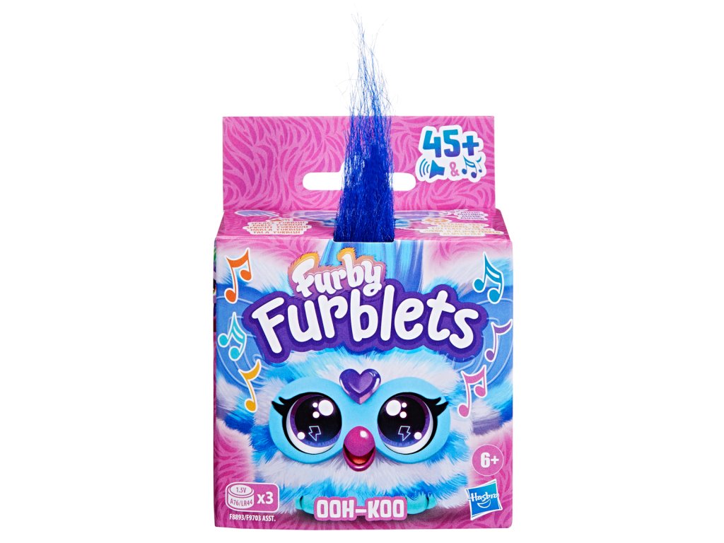 Stlačte tlačidlo srdca a budete počuť Furbyho Furblet Rocker Cool hrať svoje vlastné jedinečné melódie rockového štýlu. Malí plyšoví kamaráti Furby s neuveriteľne výraznou osobnosťou! Každý zo šiestich Furblets má svoj jedinečný hlas a charakter zodpovedajúci hudobnému štýlu, ktorý reprezentuje. Furblets majú cez 45 zvukových reakcií a dokážu harmonizovať, spoločne spievajú piesne a interagujú s veľkou hračkou Furby! Výška plyšáka 5 cm. Prevádzka hračky na 3 LR44 batérie (sú súčasťou balenia). Rozmery balenia: 12,7 x 9,5 x 5,3 cm. Vek: 6+