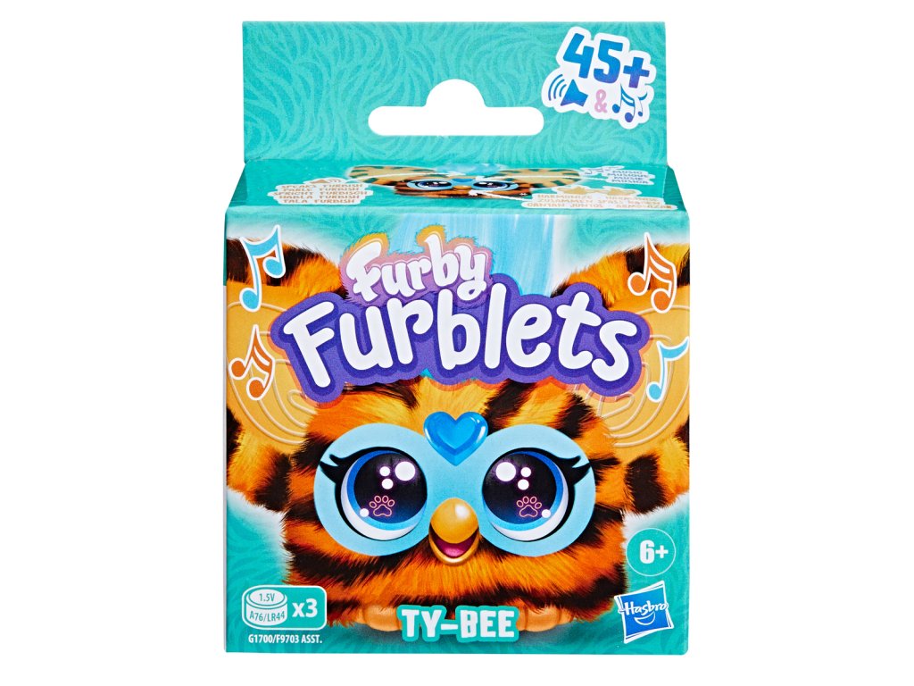 Roztomilý Furby Furblet Ty-Bee vyzerá ako malý tiger s veľkou osobnosťou. S touto mini interaktívnou hračkou môžete objavovať celý rad zábavných zvukových a hudobných efektov. Furby Furblet Ty-Bee hrá veselú hudbu a hovorí rôzne frázy v jedinečnom jazyku zvanom Furbish (Furblets nepoznajú ľudskú reč). Stlačením zobáka sa ozvú zábavné zvuky kŕmenia a kliknutím na srdiečkový drahokam sa spustí hudba. Stlačením hornej časti hlavy sa aktivujú zábavné frázy v jazyku Furbish a funkcie on/off. Furblets sú v rôznych farbách a s rôznymi hudobnými štýlmi. Nazbieraj ich viac a nechaj ich spievať spoločne. Pripnite si Ty-Bee k batohu alebo inej cestovnej taške pomocou klipu na kľúče a vezmite ho na párty kamkoľvek so sebou. Klip je odnímateľný. Funguje na gombíkové batérie 3 x LR44, ktoré sú súčasťou balenia. Ak máte väčšiu interaktívnu hračku Furbyho, aktivujte režim Furdar a pozrite sa, čo Furby hovorí o svojich malých kamarátoch Furblets. Elektronická plyšová hračka je vhodná pre dievčatá a chlapcov od 6 rokov a je zábavným spoločníkom, ktorého môžu mať deti vždy po svojom boku. Balené v krabičke. Rozmery balenia: 12,7 x 9,5 x 5,4 cm. Vek: 6+