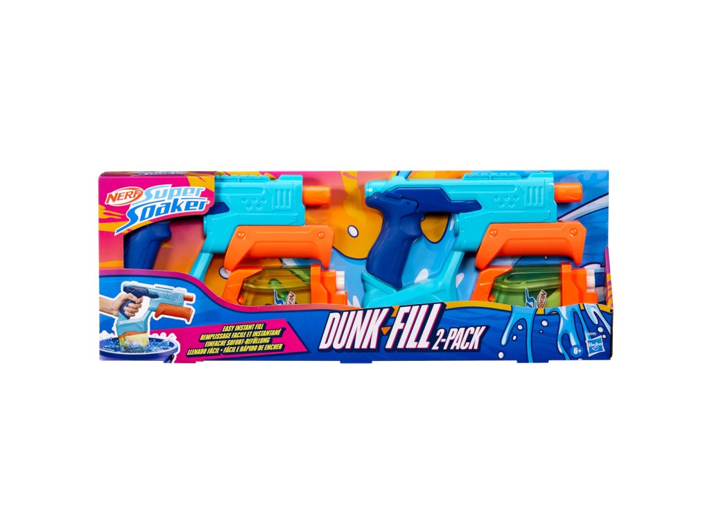 Nerf Super Soaker Dunk-Fill 2 – Pack obsahuje dva vodné blastery, ktoré umožňujú rýchle a jednoduché plnenie, takže môžete byť behom okamihu pripravení na vodné dobrodružstvo. Vďaka inovatívnej konštrukcii nádržky sa voda napustí prakticky okamžite – stačí jednoducho ponoriť blaster do vody a sledovať, ako sa ihneď napustí. Transparentná nádrž má kapacitu až 300 ml, čo zaisťuje dlhotrvajúcu zábavu. Pomocou pumpovacej rukoväte potom ľahko aktivujete silný prúd vody. Vodné blastery Nerf Super Soaker sú ideálne vonkajšie hračky pre deti, ktoré skvele oživia každú letnú aktivitu. Sú perfektným darčekom, ktorý motivuje k pohybu a zábave na čerstvom vzduchu, a to s poriadnym šplechaním! Balenie obsahuje dva blastery. Vyrobené z kvalitného plastu. Balené v krabičke. Rozmer balenia: 22,4 x 61 x 4,4 cm. Vek: 6+