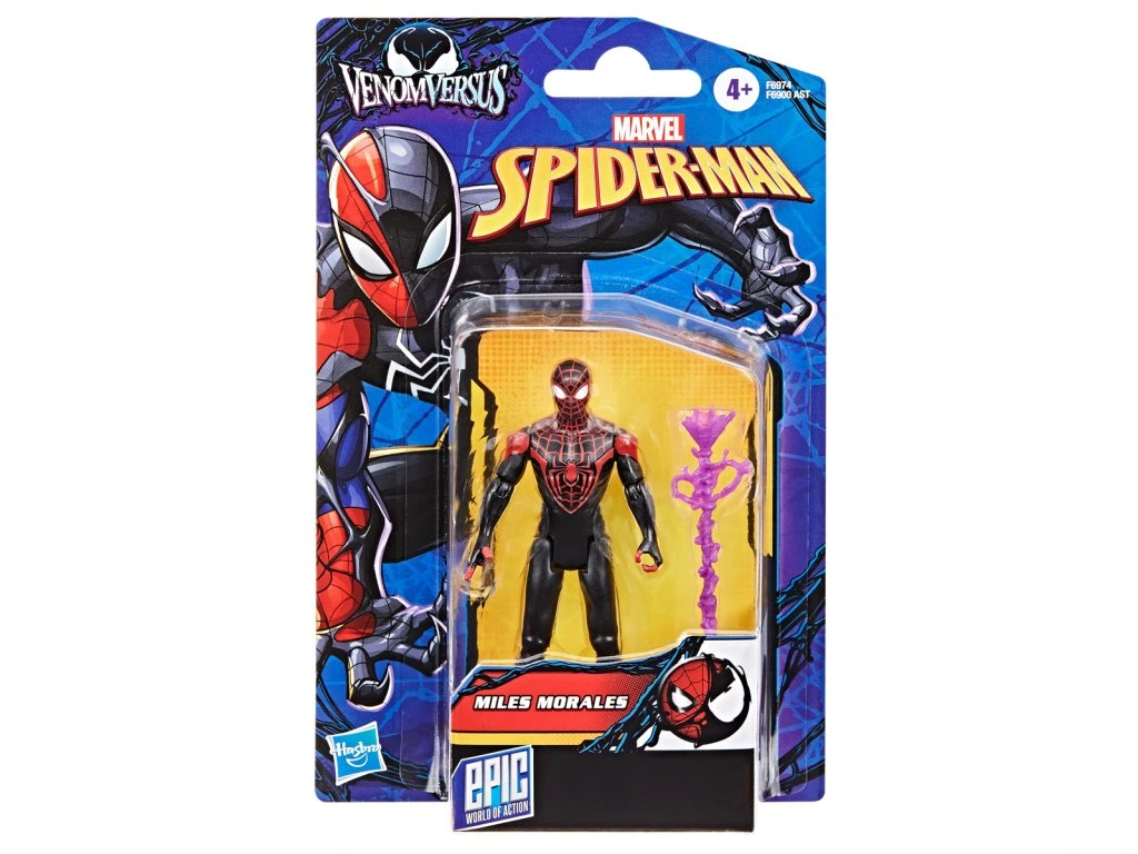 Fanúšikovia sveta Marvel, túto skvelú 10 cm vysokú figúrku Miles Morales si zamilujete. Vďaka starostlivým detailom je figúrka Spider-Man Miles Morales z kolekcie Venom Versus taktiež skvelým zberateľským kúskom. Skvelý tip na darček pre fanúšikov všetkých vekových kategórií. Figúrka má pohyblivé kĺbové končatiny a hlavu. Táto zberateľská akčná figúrka Marvel Miles Morales je súčasťou exkluzívnej série Epic World of Action od Hasbro a vyznačuje sa charakteristickým čierno-červeným designom. Figúrky VenomVersus obsahujú aj špecifický Venomized doplnok pre dobrodružstvá poháňané symbiontami. Vyrobené z kvalitného plastu. Balené v blistri. Rozmery balenia: 20,32 x 12,7 x 3,17 cm. Vek: 4+