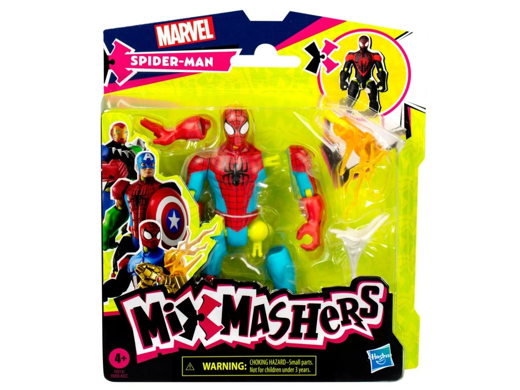 Aj tí najmocnejší superhrdinovia niekedy potrebujú pomocnú ruku ... nohu, päsť alebo príslušenstvo. Zberateľské akčné figúrky MixMashers Marvel obsahujú časti a dieliky, ktoré sa oddeľujú a spájajú dohromady a vytvárajú jedinečne prispôsobené figúrky. Figúrky MixMashers o veľkosti 12 cm majú 16 pripojovacích bodov a majú univerzálne konektory pre kompatibilitu a odolnosť v celom rade. Deti môžu vytvárať figúrky superhrdinov Marvelu, ktoré môžu rozložiť, kombinovať a miešať dohromady bláznivými, osobitými spôsobmi. Vďaka miliónom kreatívnych spôsobov, ako vymeniteľné diely mixovať, tieto hračky Marvel podporujú hodiny nápaditej hry pri vytváraní jedinečných figúrok. Akčná figúrka Marvel Spider-Man sa dodáva so žltým bioelektrickým FX dielom Milesa Moralesa a ďalšími doplnkami. Vyrobené z kvalitného plastu. Výška figúrky: 12 cm. Rozmery balenia: 20,3 x 17,8 x 3,8 cm. Vek: 4+