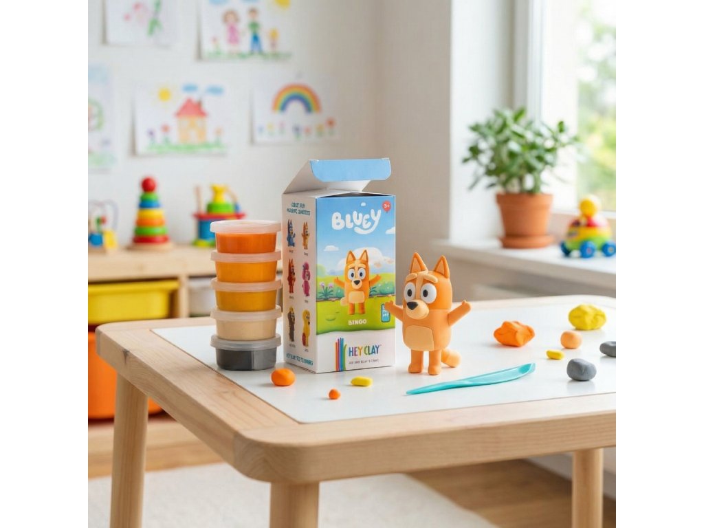 Hey Clay Bluey BingoVytvorte si vlastný svet BlueyPonorte sa do sveta fantázie s Bluey! Vďaka kreatívnej sade Hey Clay: Bingo si deti môžu vlastnými rukami vytvoriť svoju obľúbené postavičku z obľúbeného rozprávkového sveta. Objavte inšpirácie v aplikácii a vytvorte si postavičky presne podľa návodu Sada obsahuje 5 nádobiek farebnej plastelíny. Navyše, prístupový kód do aplikácie umožňuje detičkám inšpirovať sa novými nápadmi a vytvoriť postavičku presne podľa návodu. Ak deti nie sú so svojím výtvorom spokojné, Hey Clay môžu jednoducho uložiť späť do téglika a pokračovať v modelovaní neskôr. Deti si pri hre trénujú svoje zručnosti, jemnú motoriku a rozvíjajú fantáziu.