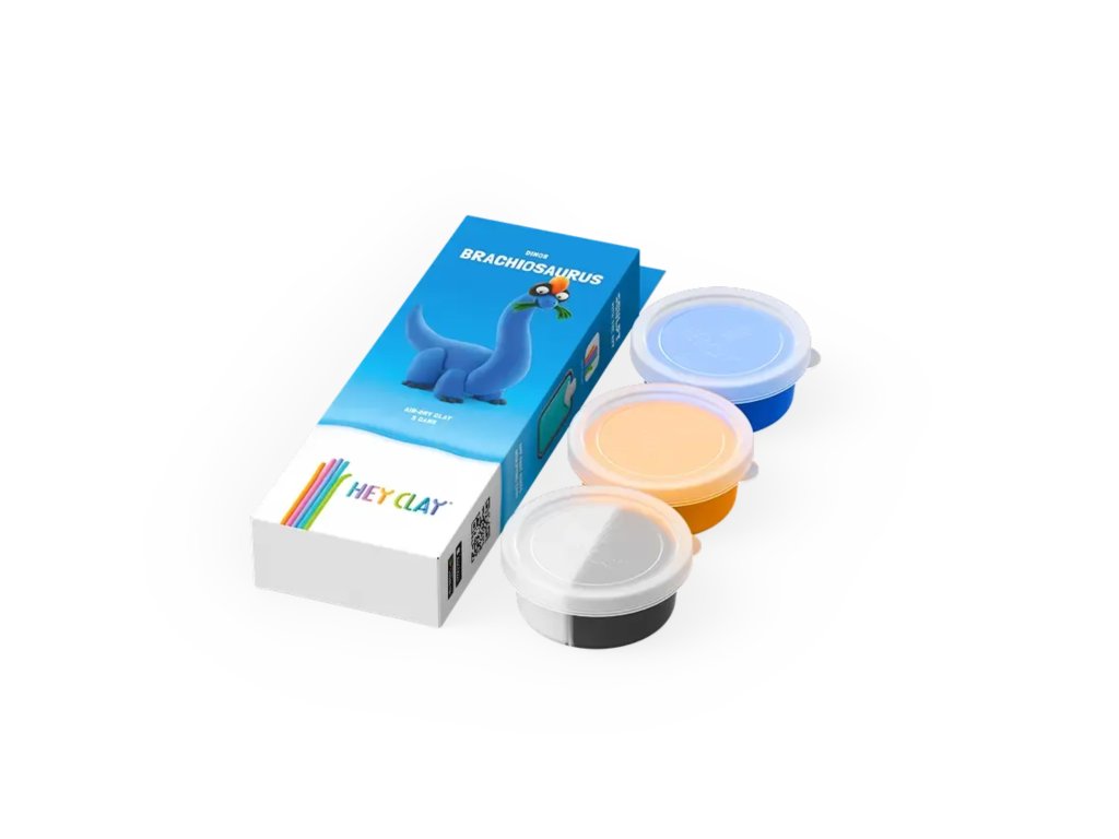 Hey Clay Brachiosaurus Vymodelujte si originálnu postavičku dinosaura Plastelína v pestrých farbách Hey Clay poteší každé dieťa, ktoré miluje svet kreatívneho tvorenia - podporuje jemnú motoriku, predstavivosť a umožní nekonečné formovanie. Po vymodelovaní stačí nechať postavičky zatvrdnúť na vzduchu približne 24 hodín, čím sa premenia na pevné figúrky a sú pripravené na ďalšie dobrodružstvá a hry.Tvoreniu sa žiadne medze nekladú Farebný rozmer zábavy - obsahuje 3 nádoby s mäkkou, jemnou a vońavou plastelínouBezpečné zloženie - netoxická plastelína vhodná aj pre najmenšíchPodporuje rozvoj zručností - modelovanie rozvíja prsty a koordináciuVšestranné využitie - na doma, do školy, na tvorivé dielnePrístupový kód do aplikácie - detičky sa môžu inšpirovať novými nápadmi Ideálny darček - pre predškolákov, školákov alebo kreatívne rodinné chvíle