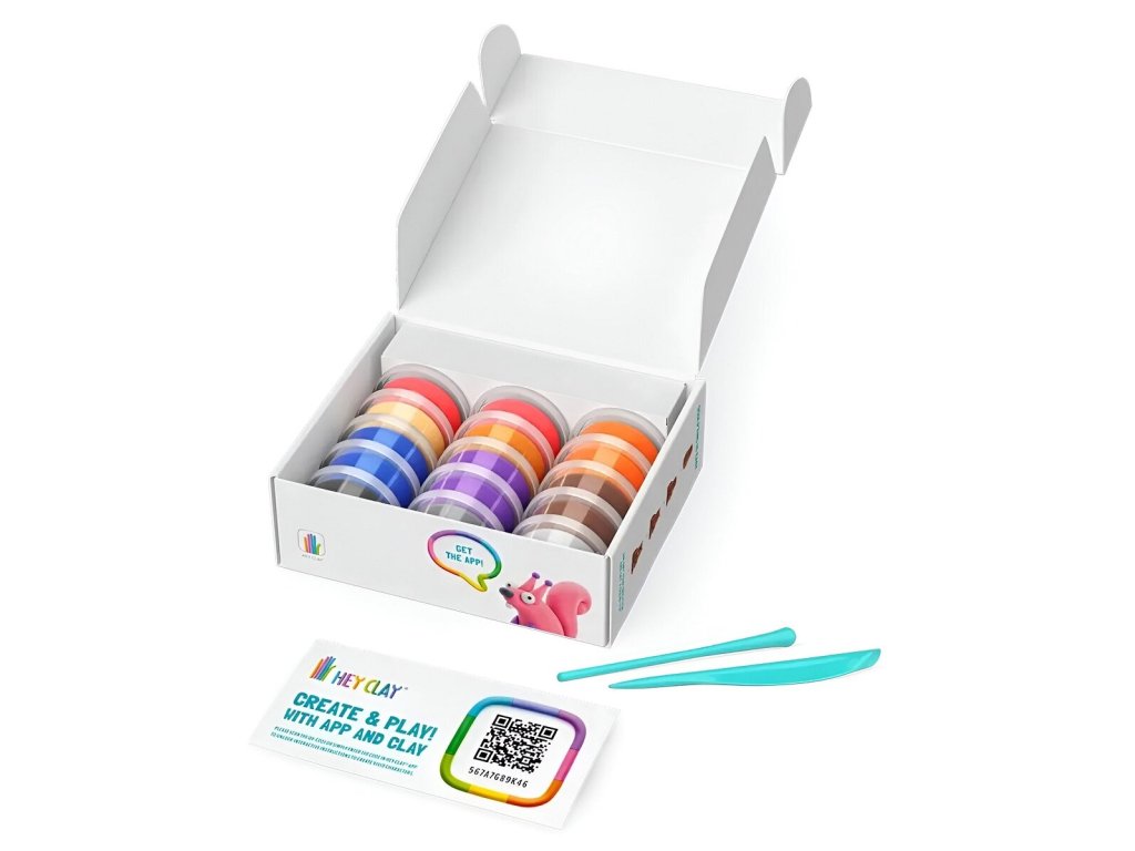 Hey Clay Lesné zvieratá Vymodelujte si originálne postavičky lesných zvieratiek Modelovacia hmota Hey Clay je ideálna pre všetky deti, ktoré milujú kreatívne tvorenie. Vďaka jemnej a voňavej modelovacej hmote si môžu vytvoriť originálne postavičky lesných zvieratiek a iné rôzne figúrky, podľa vlastnej fantázie. Po vymodelovaní stačí nechať postavičky zatvrdnúť na vzduchu približne 24 hodín, čím sa premenia na pevné figúrky a sú pripravené na ďalšie dobrodružstvá a hry.Objavte inšpirácie v aplikácii a vytvorte si postavičky presne podľa návodu Sada obsahuje 15 nádobiek farebnej plastelíny a 2 plastové pomôcky pre jednoduchšie modelovanie. Navyše, prístupový kód do aplikácie umožňuje detičkám inšpirovať sa novými nápadmi a vytvoriť 6 rôzne postavičky presne podľa návodu. Ak deti nie sú so svojím výtvorom spokojné, Hey Clay môžu jednoducho uložiť späť do téglika a pokračovať v modelovaní neskôr. Deti si pri hre trénujú svoje zručnosti, jemnú motoriku a rozvíjajú fantáziu.