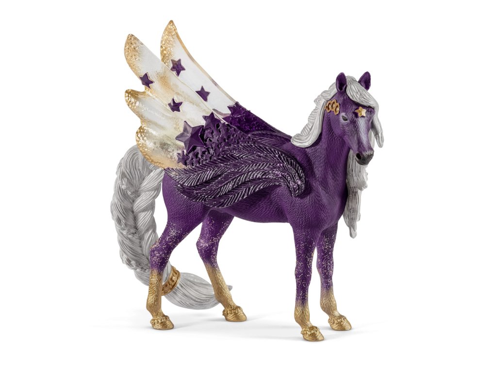 Táto krásna kobyla hviezdneho Pegasa nie je z tohto sveta. Pochádza z nekonečna vesmíru, čo je vidieť na prvý pohľad. Chráni tajomstvo, o ktorých nemáme ani tušenie. Jej zjav jej dodáva kúzelné výzoru, pretože vzbudzuje dojem, že práve zostúpila z nočnej hviezdnej oblohy. Ona a jej rodina, hrdý žrebec mesačného jednorožca a ich spoločné, roztomilé žriebä jednorožca, tvoria očarujúce společnost.Zábavný fakt: Táto krásna kobyla hviezdneho Pegasa je bytosť pochádzajúci zo vzdialenej hviezdy. Figúrky Schleich sú mimoriadne detailné, láskyplne maľované a umožňujú deťom hrať sa a zároveň sa učiť. Nevhodné pre deti do 3 rokov. Odporúčaný vek: 5-12. Rozmer balenia: 15 x 18 x 8,2 cm