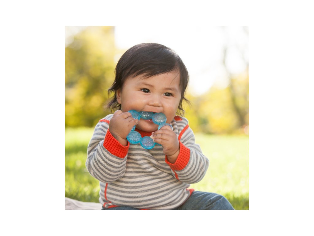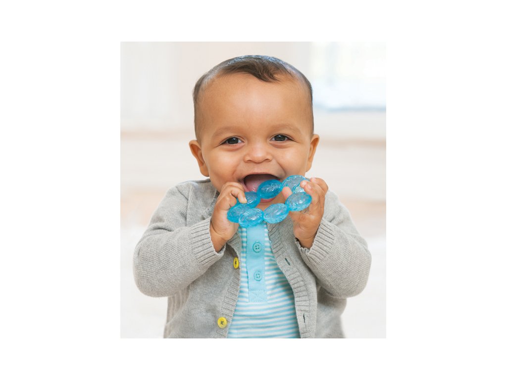 VAROVÁNÍ: Odstraňte všechny části obalu z dosahu dítěte. Před použitím zkontrolujte hračku, zda není nějaká její část poškozená. Uschovejte části obalu s instrukcemi pro pozdější použití. Kousátko možno chladit v lednici, ne v mrazáku. Zmrazením může dojít k prasknutí kousátka. Údržba: pouze otírejte vlhkým hadříkem, nesterilizujte, neponořujte do vody