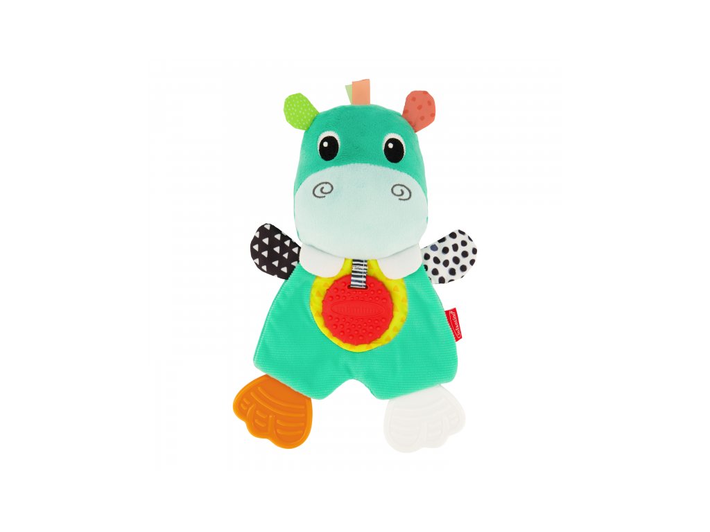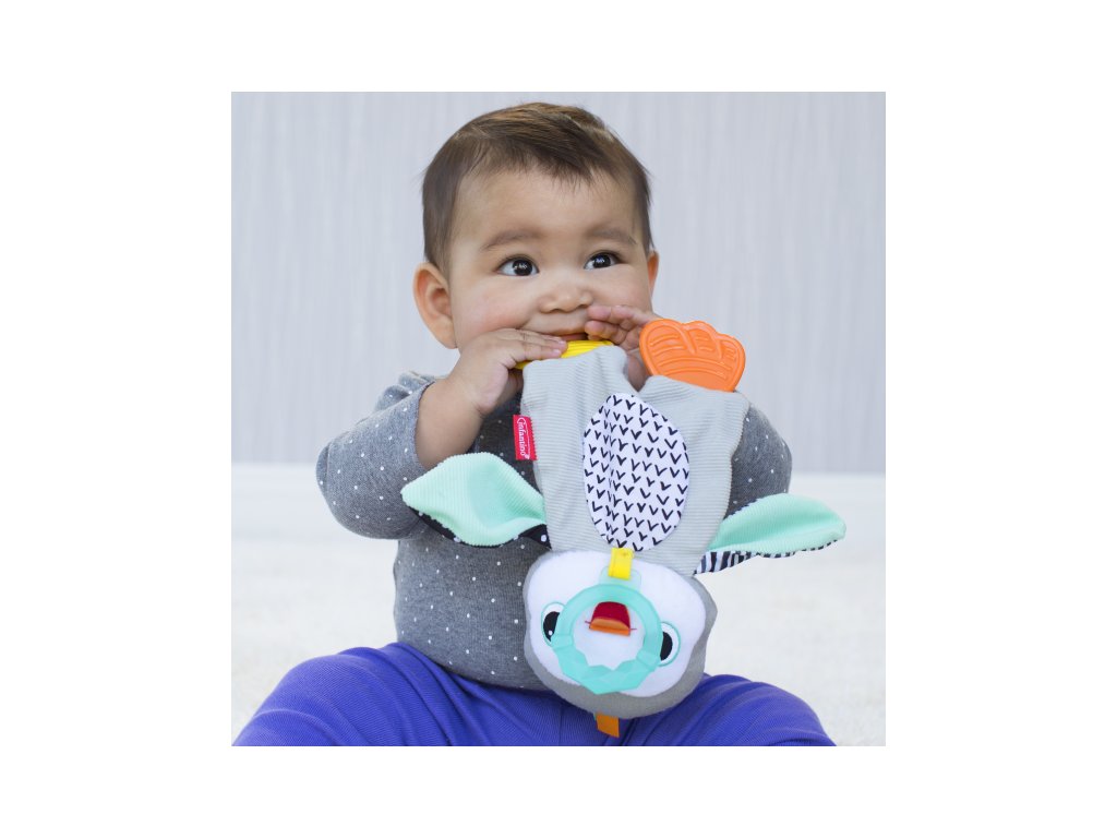 Maznacia hračka s hryzátkami je vhodná ako prvá hračka dieťaťa. Rôznorodé textúry i šuštiace časti lákajú dieťa na skúmanie rukami aj ústami. Hryzátka dieťaťu uľavia pri prerezávaní prvých zúbkov.