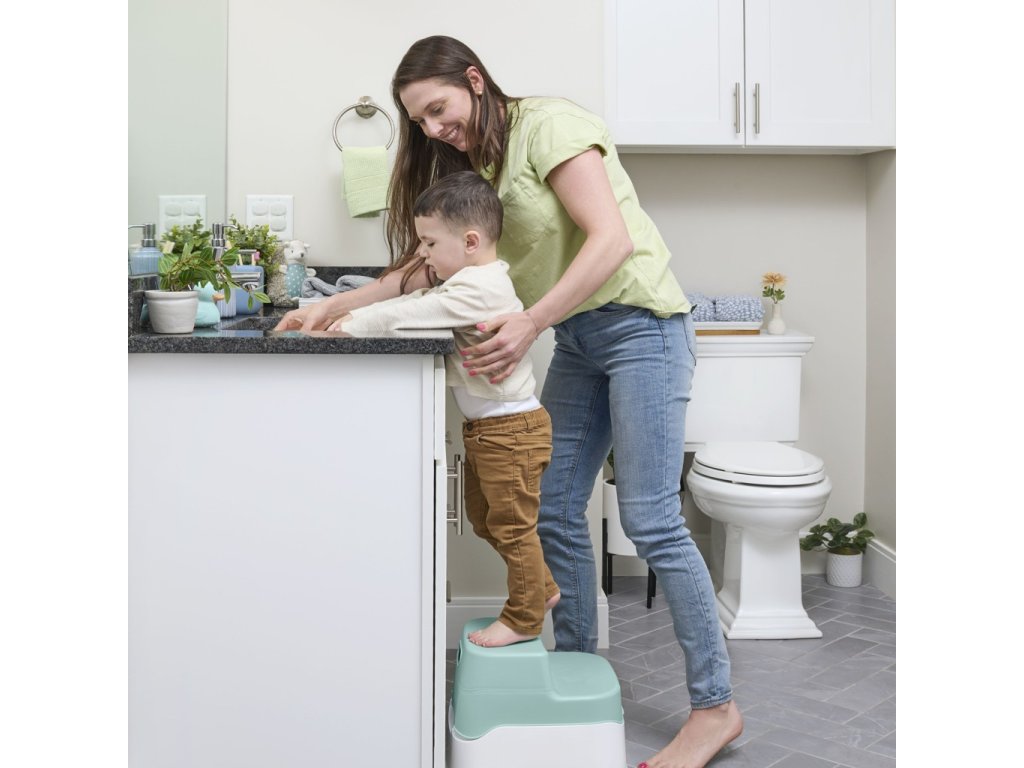- Dvojstupňová stolička pomáha dieťaťu dosiahnuť na toaletu aj umývadlo