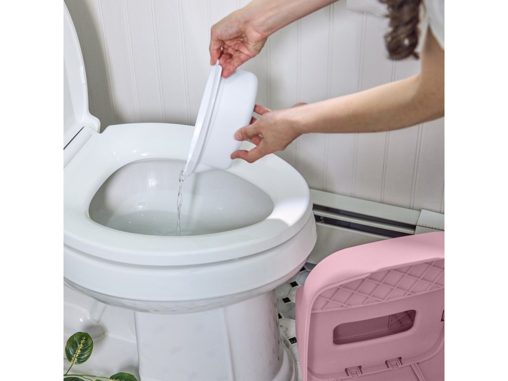 Nočník je vybavený vyberateľnou vnútornou nádobou s výlevkou, ktorá umožňuje jednoduché čistenie a menej neporiadku pri každom použití. Keď je čas prejsť na klasickú toaletu, stačí zložiť vrchnú časť a položiť ju na záchod pre dospelých – redukcia má integrovanú zábranu proti vyšplechnutiu a úchytky pre bezpečnosť. Nakoniec môžete zavrieť veko a premeniť nočník na stabilnú dvojstupňovú stoličku, ktorá pomôže vášmu dieťaťu dosiahnuť na toaletu alebo umývadlo. Vďaka protišmykovej spodnej časti zostáva všetko stabilné a bezpečné.