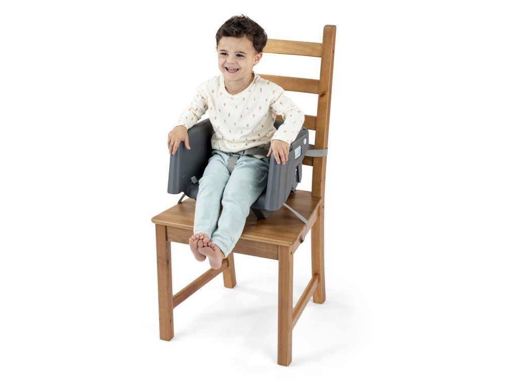 Ergonomický dizajn stoličky pomáha s posturálnou stabilitou, zatiaľ čo viacpolohová nastaviteľná opierka nôh zabraňuje viseniu nôh a ponúka väčšie pohodlie, aby sa dieťa mohlo sústrediť na jedlo. Dizajn sedenia 90/90/90 udržuje nohy dieťaťa v optimálnej polohe v 90-stupňovom uhle, čím podporuje pohodlie a správne držanie tela. Sedaciu podložku a vložku možno prať v práčke.