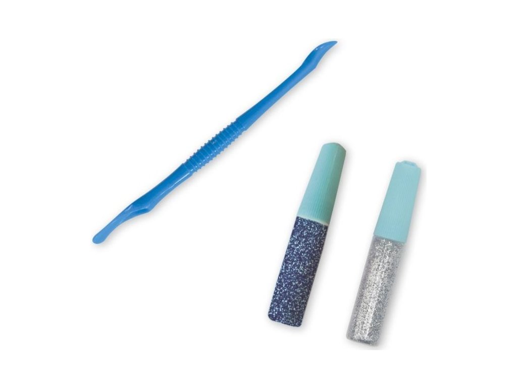 pomocou špachtle odstráňte samolepiace časti a rozotrite pekne lesklé trblietky!