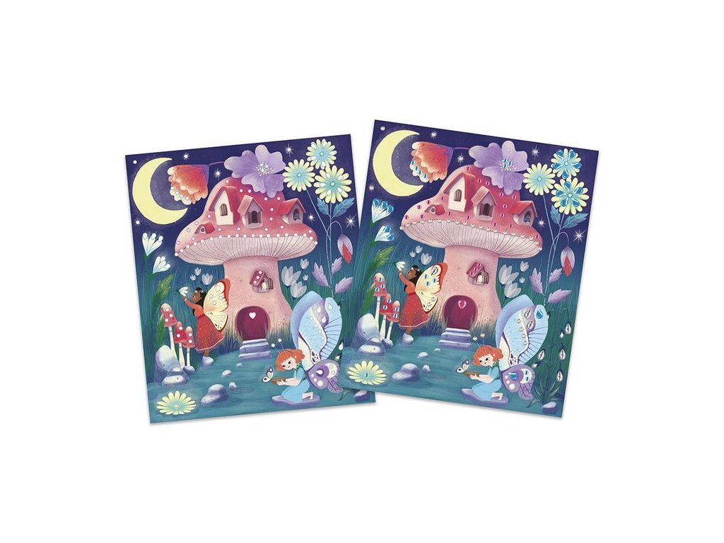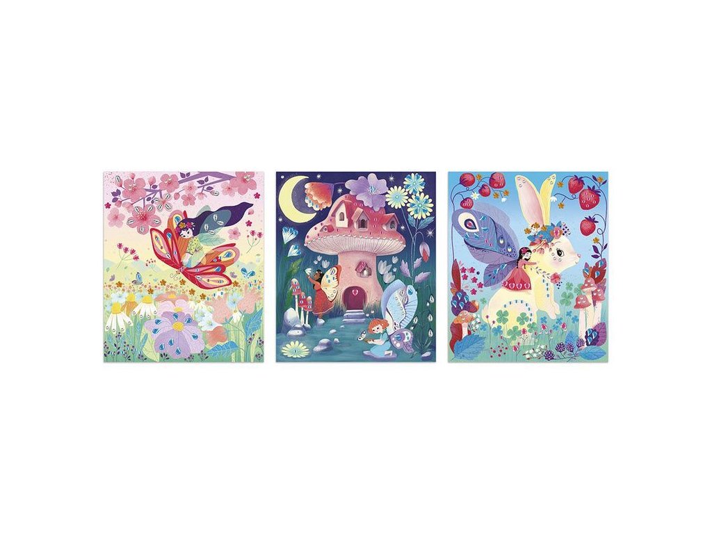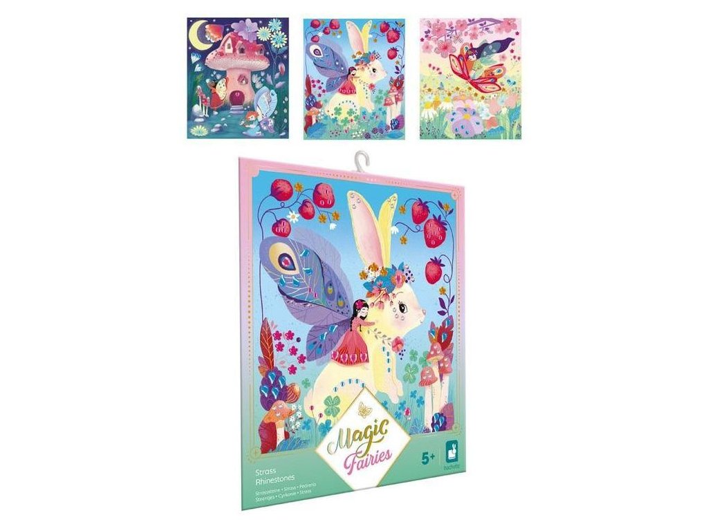 Kreatívna sada obsahuje 3 dekoračné dosky (21 x 25 cm), ktoré zobrazujú rozprávkový svet víl. Na ilustráciu je možné ako na navrhovaných miestach, tak aj ľubovoľne nalepiť trblietavé zirkóny, ktoré sú súčasťou balenia (na hárku je 300 zirkónov v rôznych farbách a tvaroch).