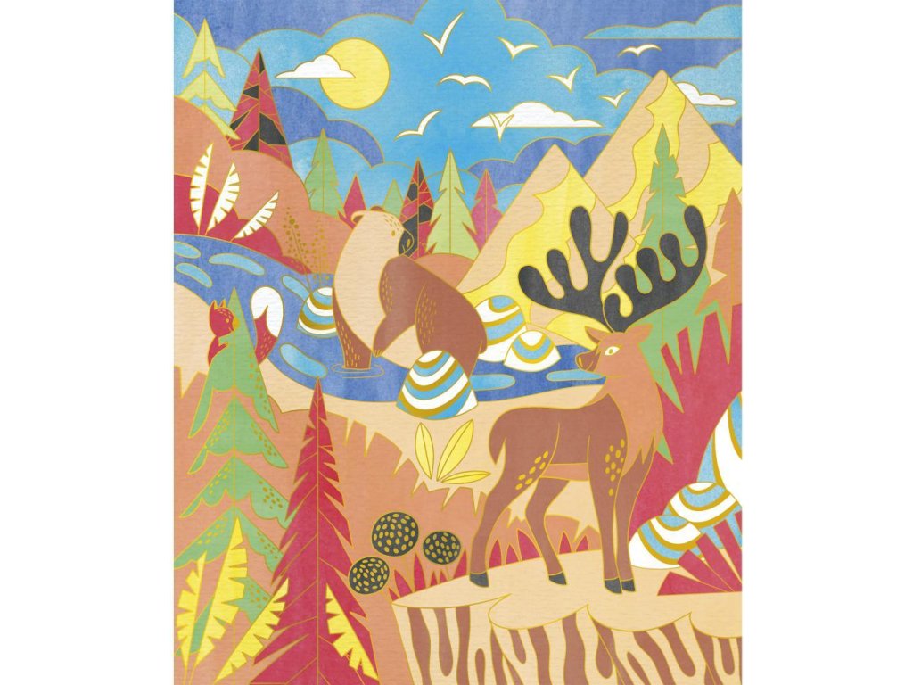 Podľa predlohy dieťa vyfarbuje rôzne časti maľby pomocou štetcového pera. Postupne scéna ožíva s každou pridanou farbou.