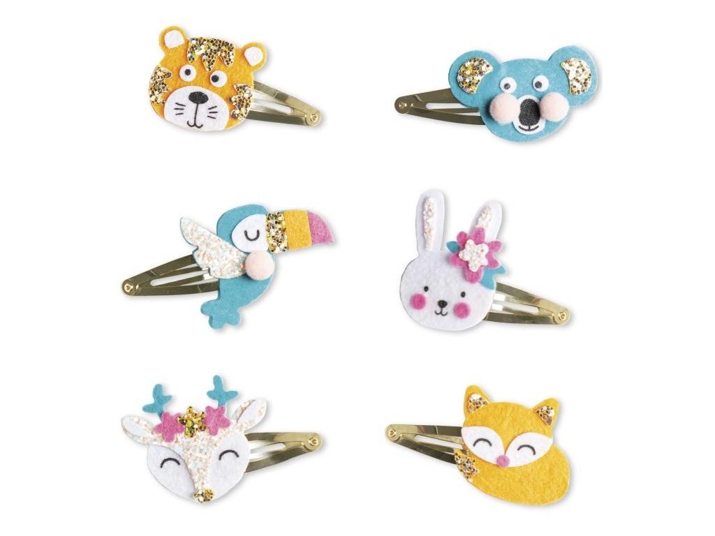 Dodajte svojmu účesu roztomilý nádych s touto kreatívnou sadou, ktorá zahŕňa vytvorenie 6 trblietavých zvieracích sponiek!