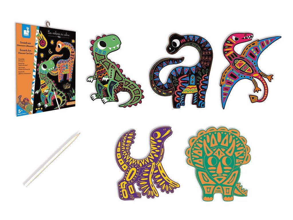 Janod Atelier vyškrabovacie obrázky Dinosaury Sada Mini 5+