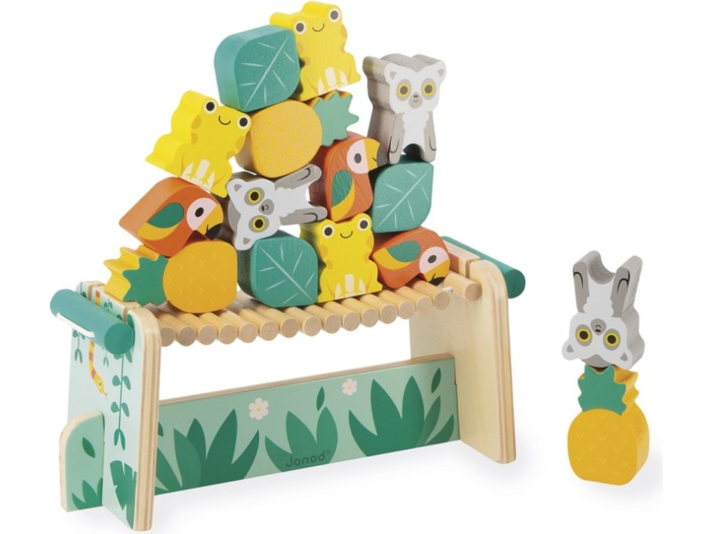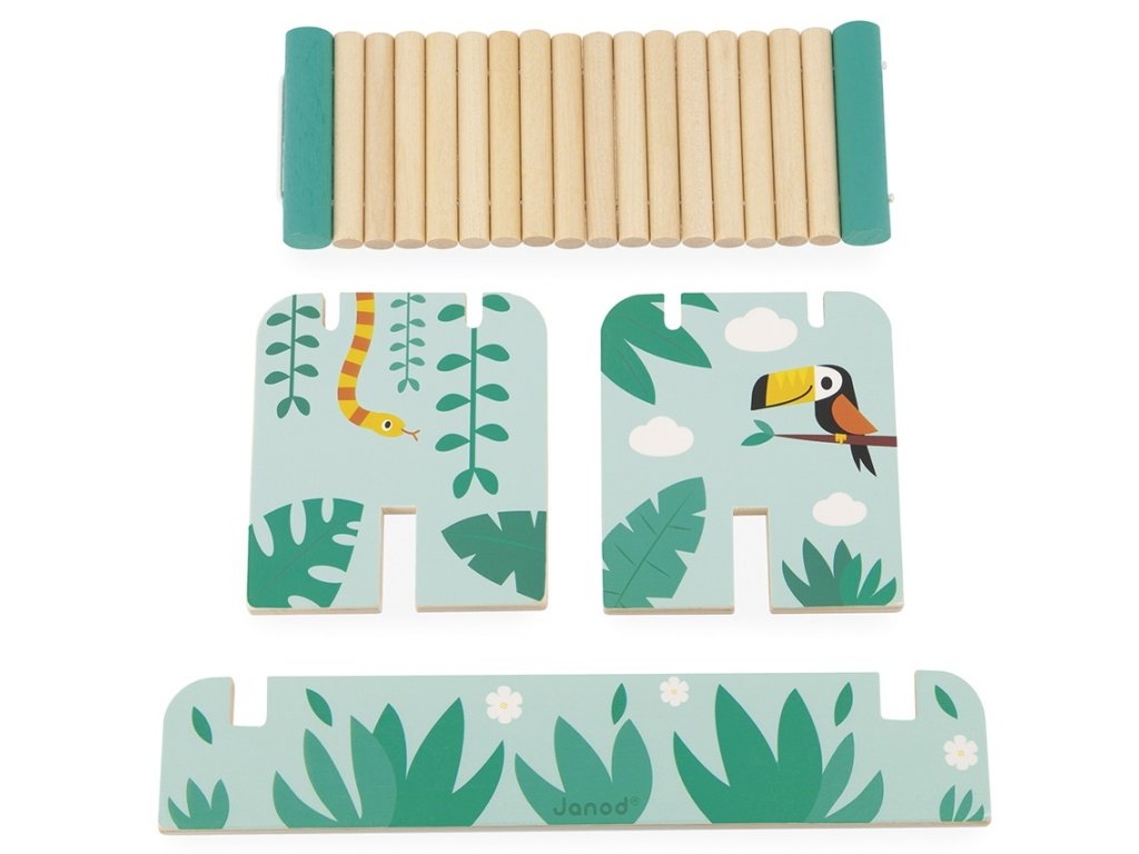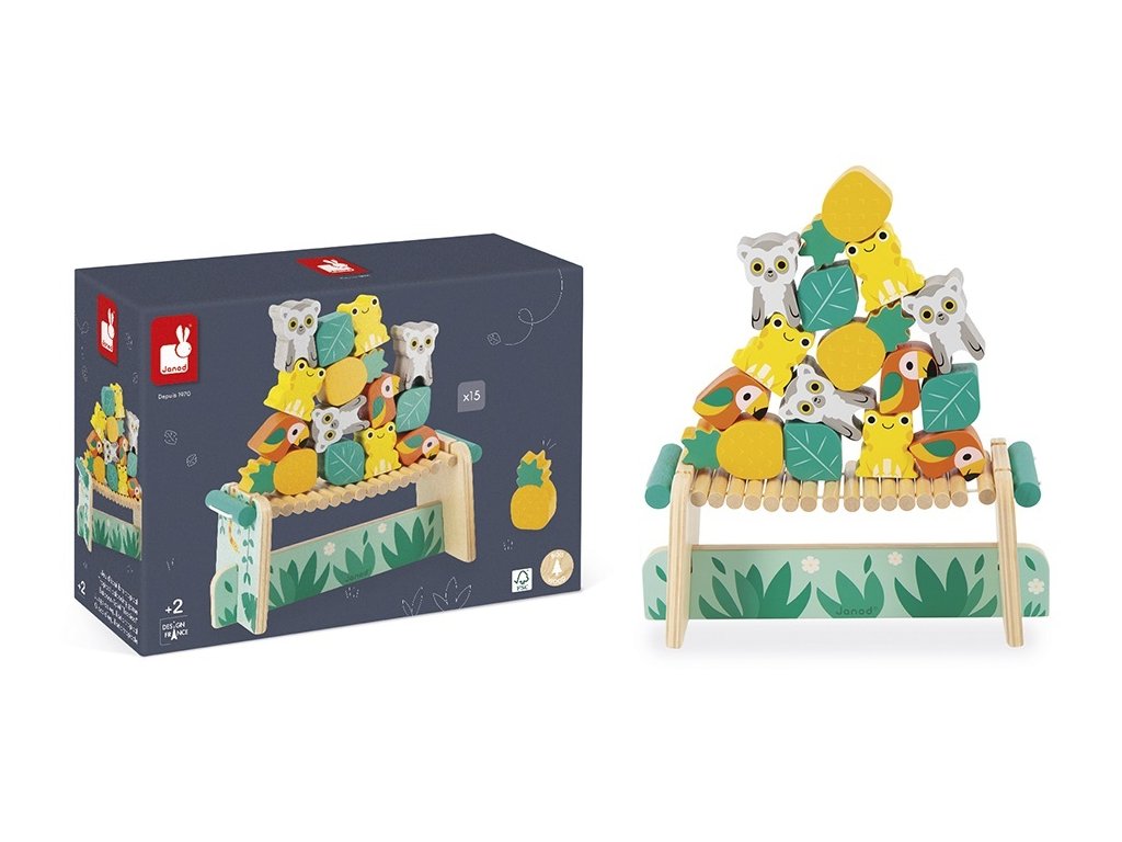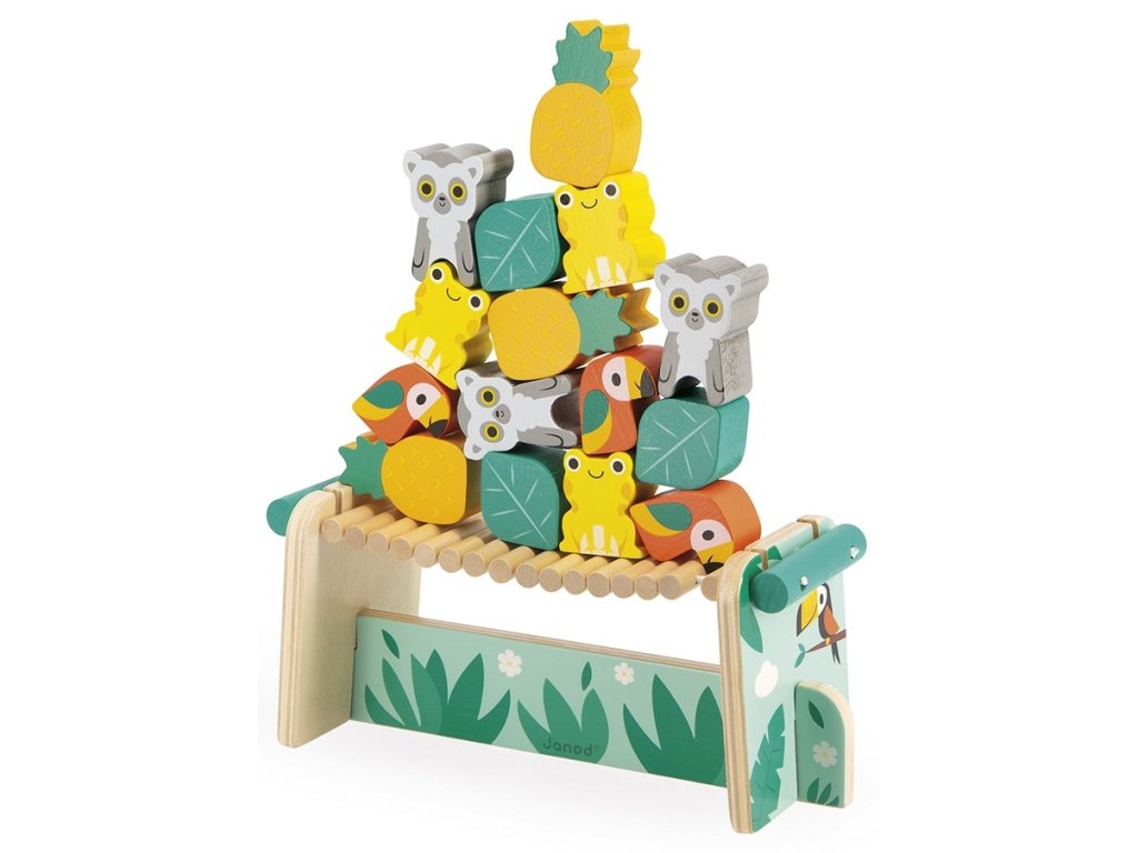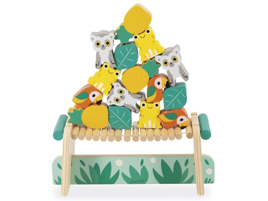 Je tu otázka rovnováhy na opičom moste! Vaše dieťa bude musieť ukázať šikovnú myseľ a jemný cit v rukách, aby umiestnilo všetkých 15 drevených dielikov na most bez toho, aby sa prevrátil.