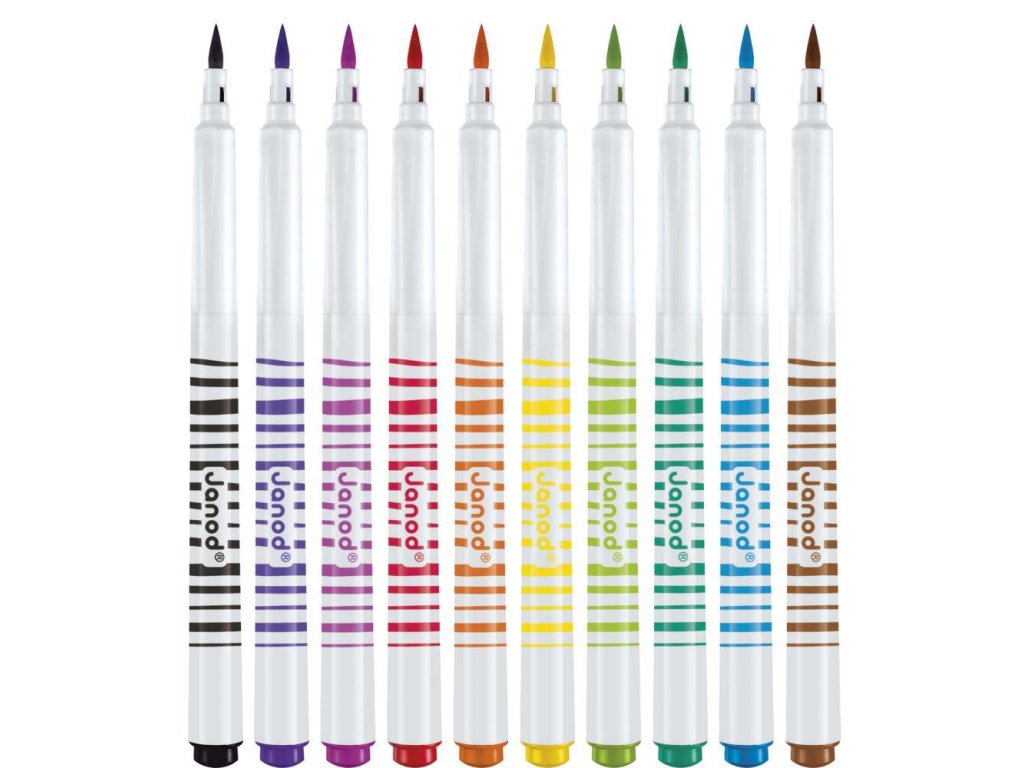 Týchto 10 fixiek s plsteným hrotom, ktoré sú vhodné pre deti vo veku 3 a viac rokov, ponúka paletu jasných farieb, ktoré oživia kresby.