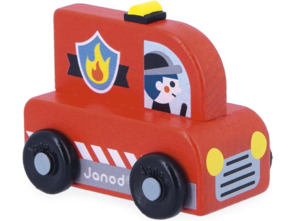 Janod Cross roads Drevené auto na tlačenie Hasiči červené