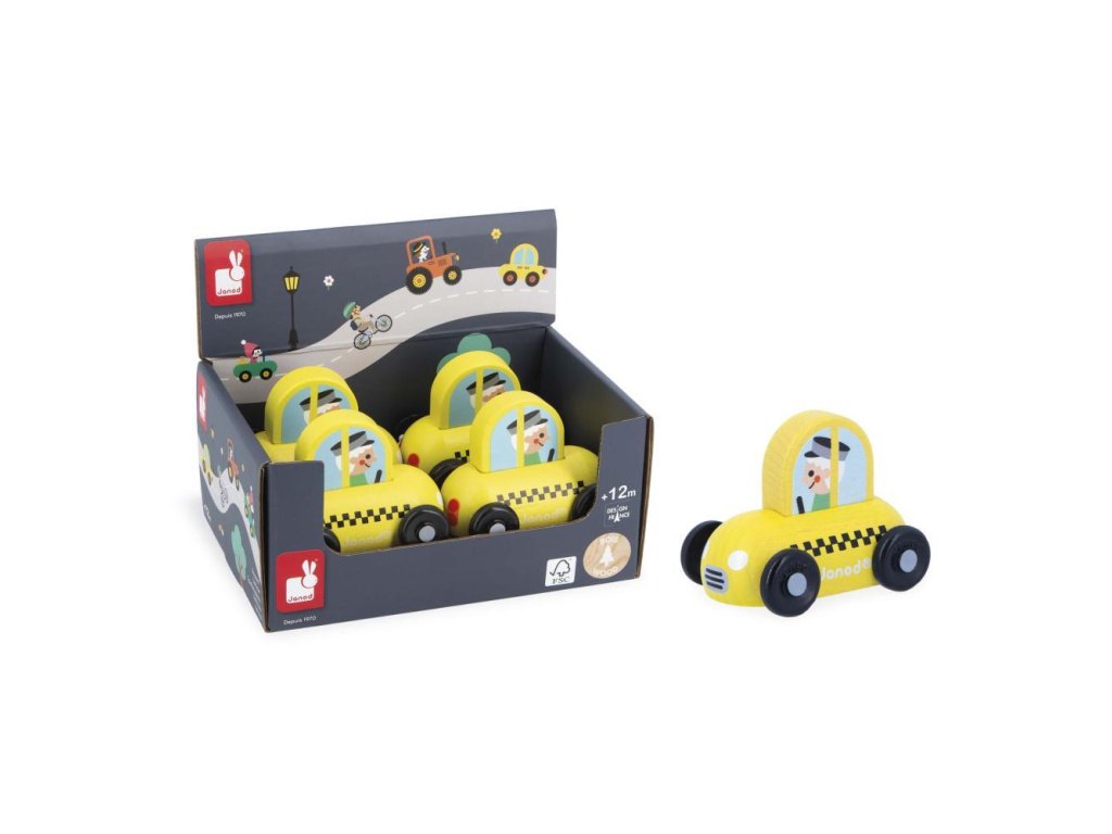 Janod Cross roads Drevené auto na tlačenie Taxi žlté