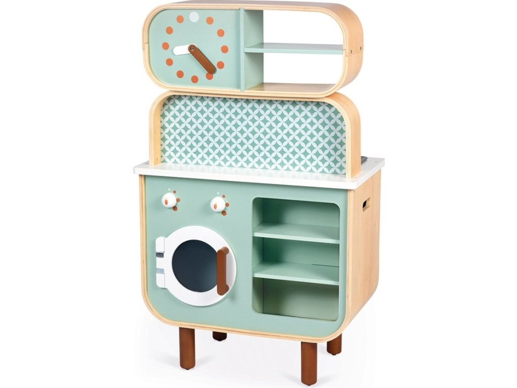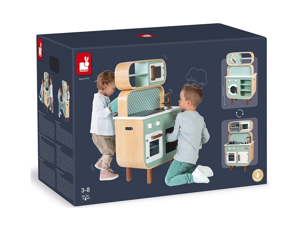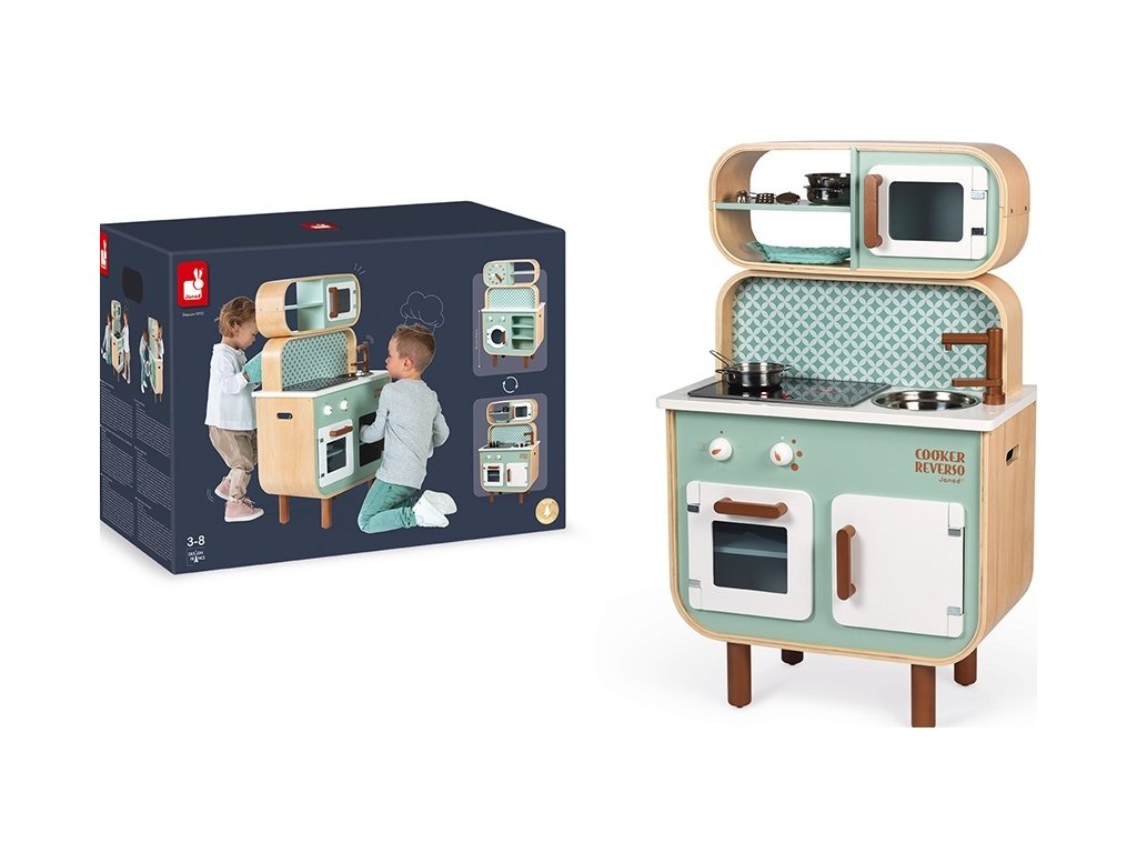 Detská drevená kuchynka Reverso Janod obojstranná s práčkou a príslušenstvom je v nádhernej kombinácii farieba tak je vhodná rovnako pre chlapcov ako aj pre dievčatá.