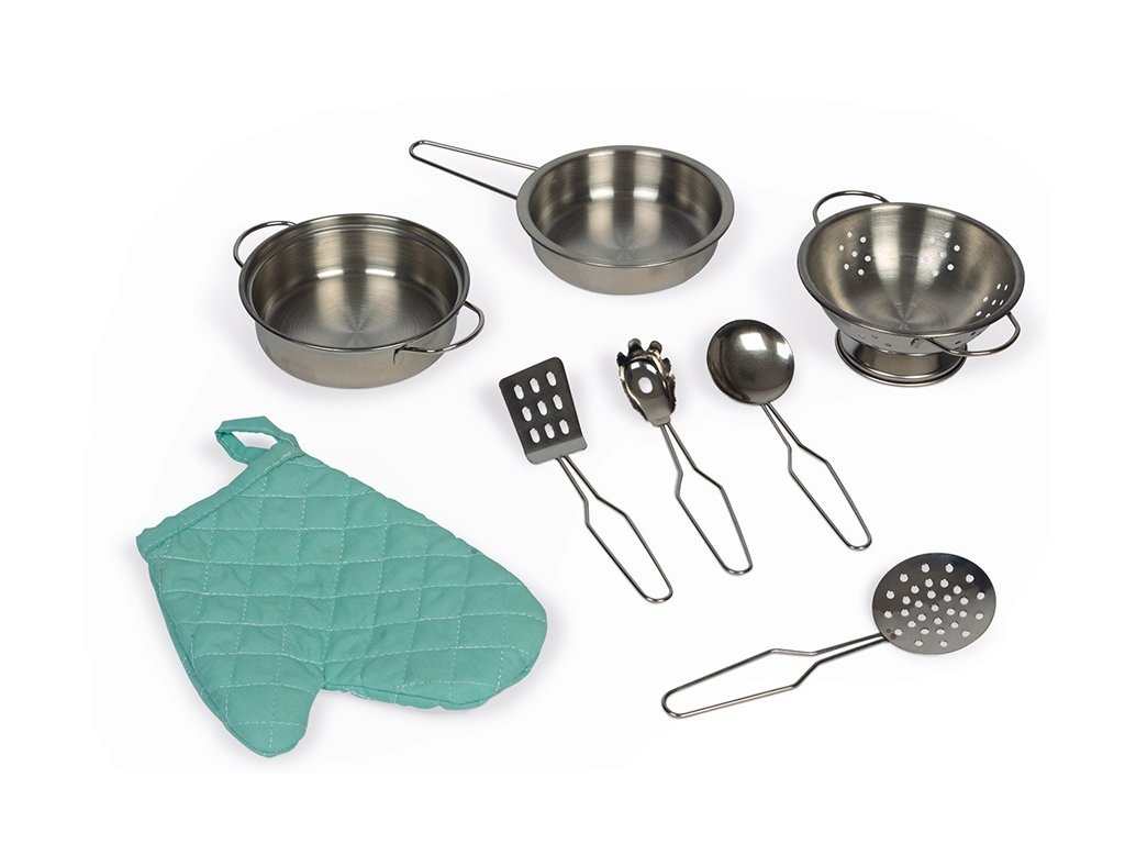 Súčasťou kuchynky je aj príslušenostvo pre kuchára, ktorý to s varením myslí naozaj vážne: sitko, hrniec, panvica, obracačka, dve naberačky a chňapka.Z druhej strany kuchynky sa nachádza práčovňa s práčkou, vstavanámi poličkami a hodinami s pohyblivými ručičkami.