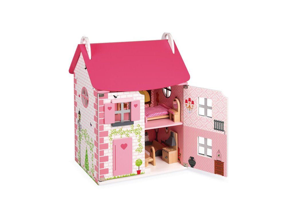 Janod Domček pre bábiky s nábytkom a otváracou strechou