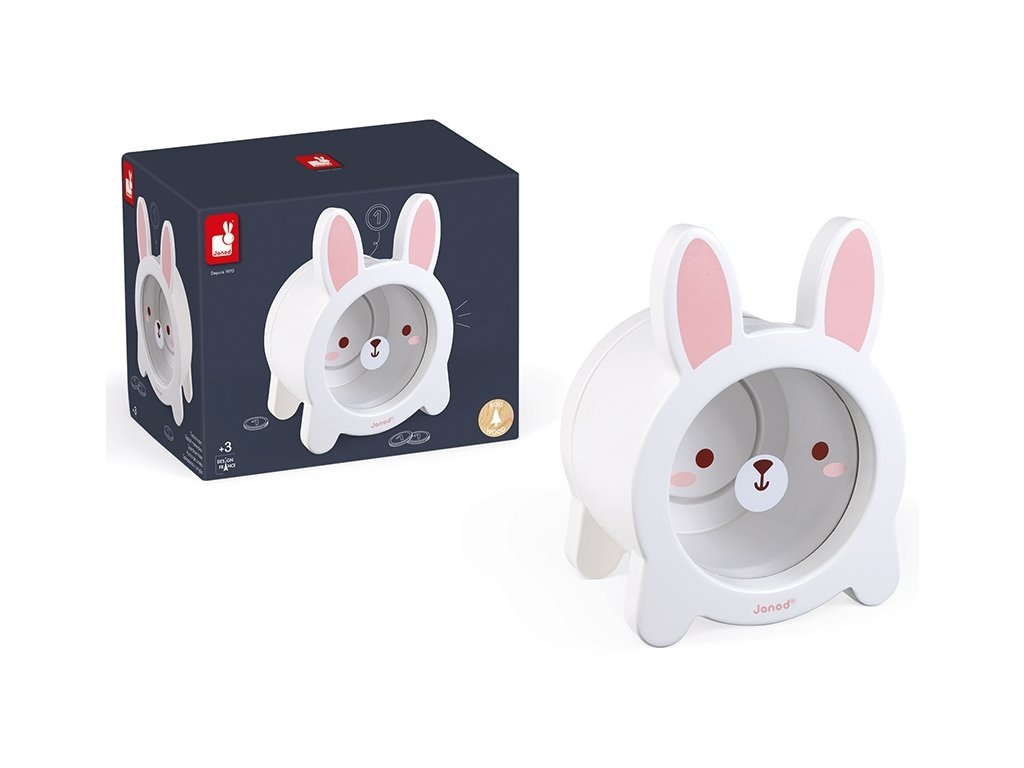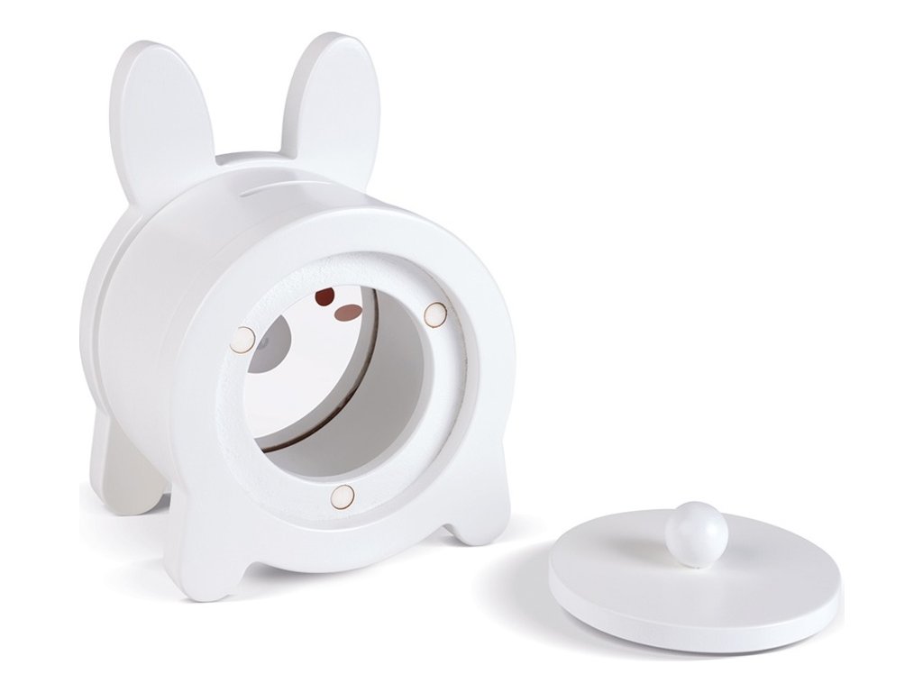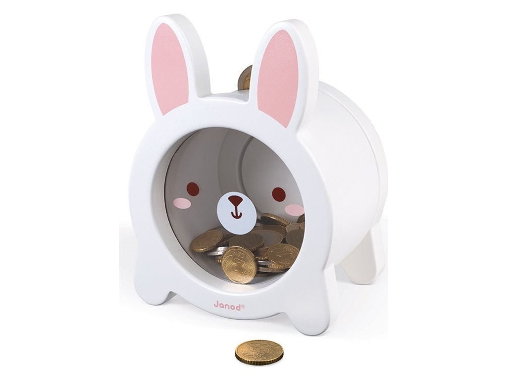 Drevená pokladnička na peniaze pre deti Zajačik Janod séria Deco.Štýlová drevená pokladnička bude skvelým pomocníkom pri prvom šetrení peňazí detí.