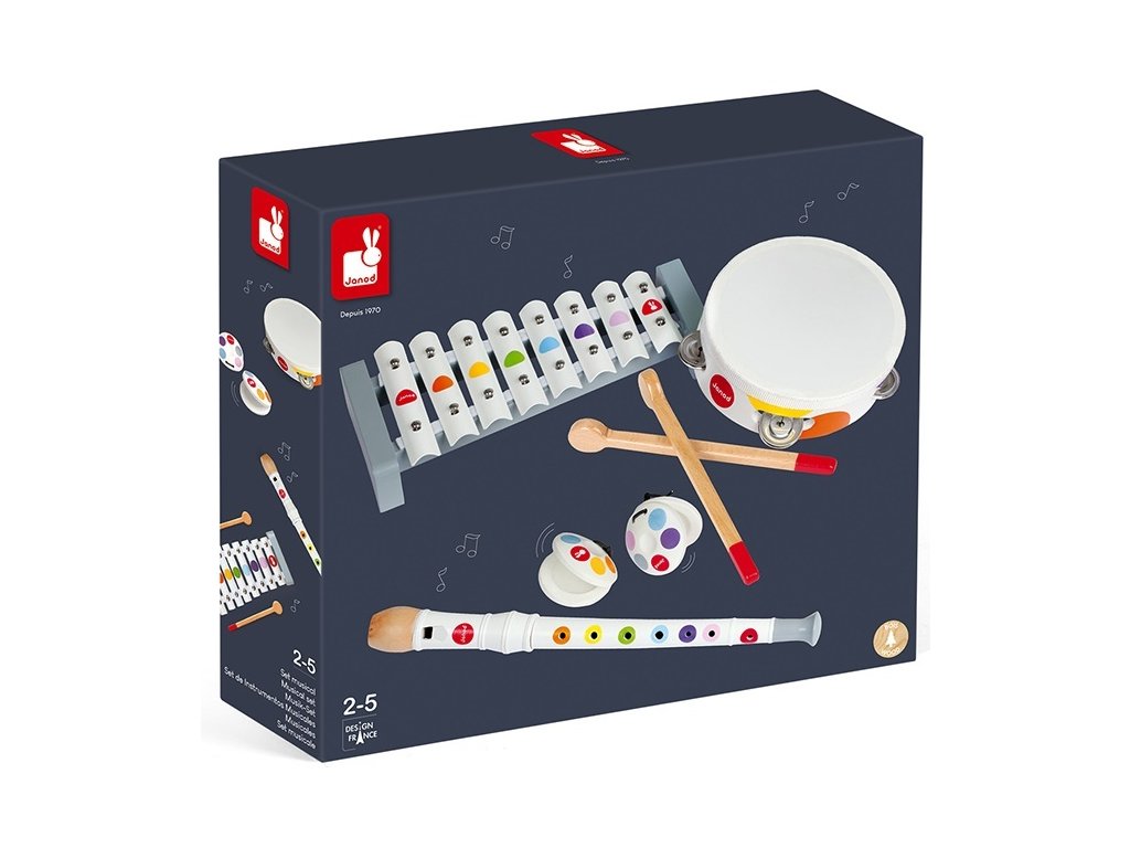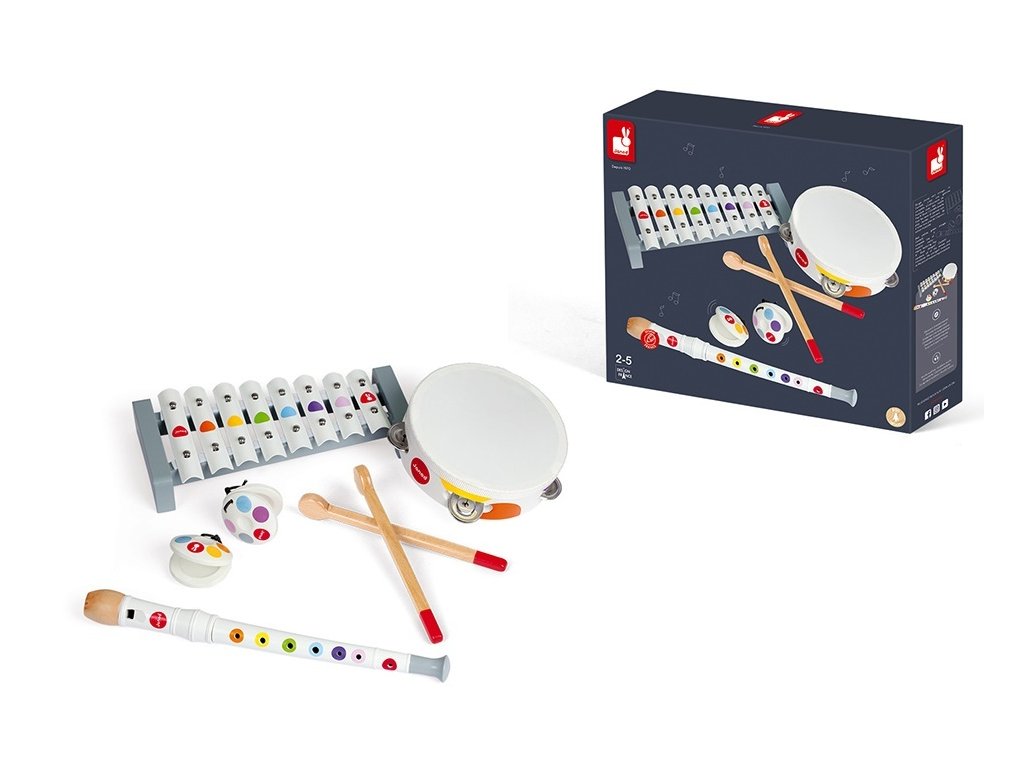 Janod Drevená sada hudobné nástroje Confetti flauta-tamburína-xylofón-kastanety