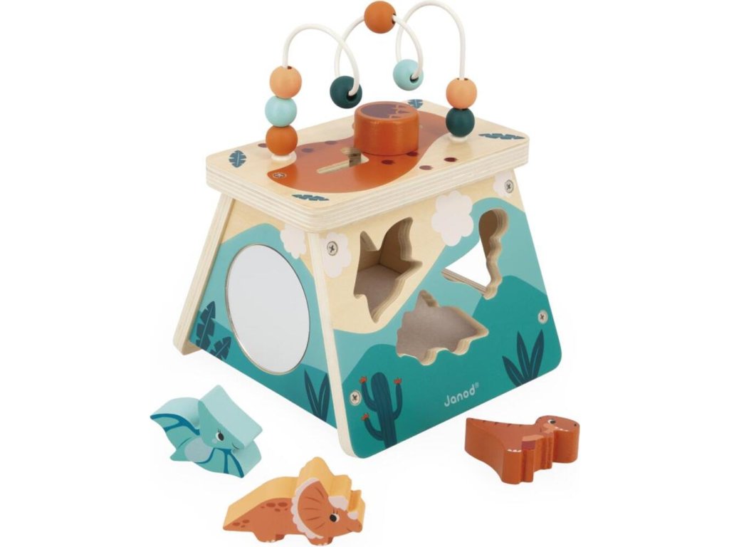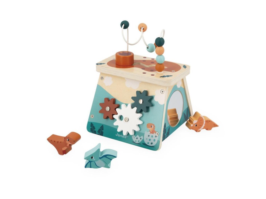 S touto multifunkčnou sopkou zavediete svoje dieťa do sveta dinosaurov. Na prednej strane nájdete možnosť umiestňovať dinosaurov do vyrezaných otvorov.