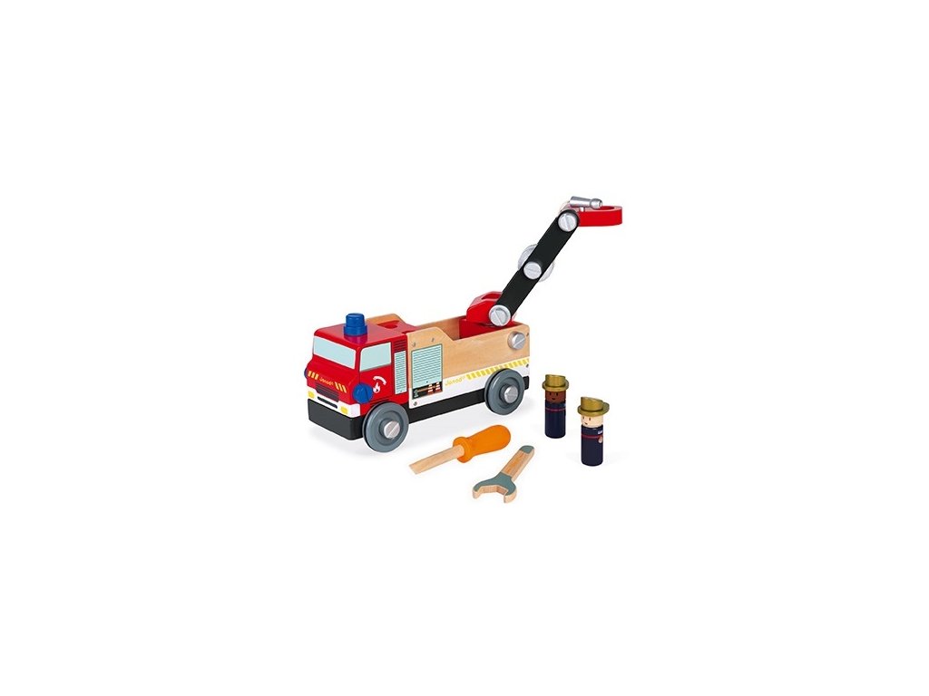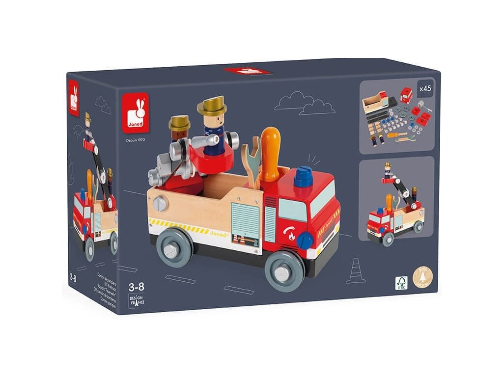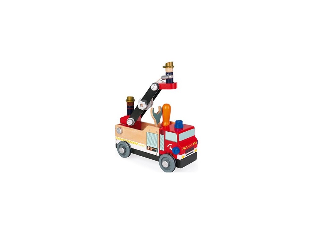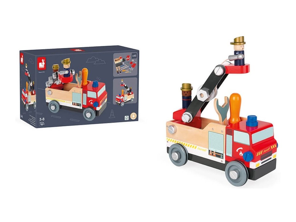 Drevená hračka 2v1: stavebná hra na zostavenie nádherného hasičského vozidla pomocou mnohých dodaných dielikov, matíc a skrutiek.