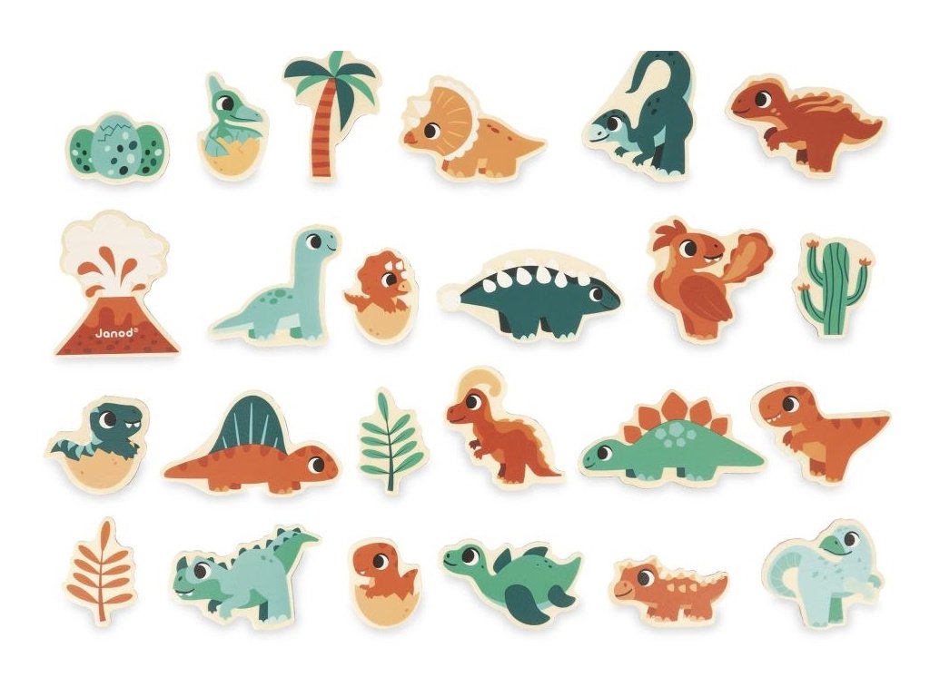 Janod Drevené magnetky pre deti Dinosaury Dino 24 ks