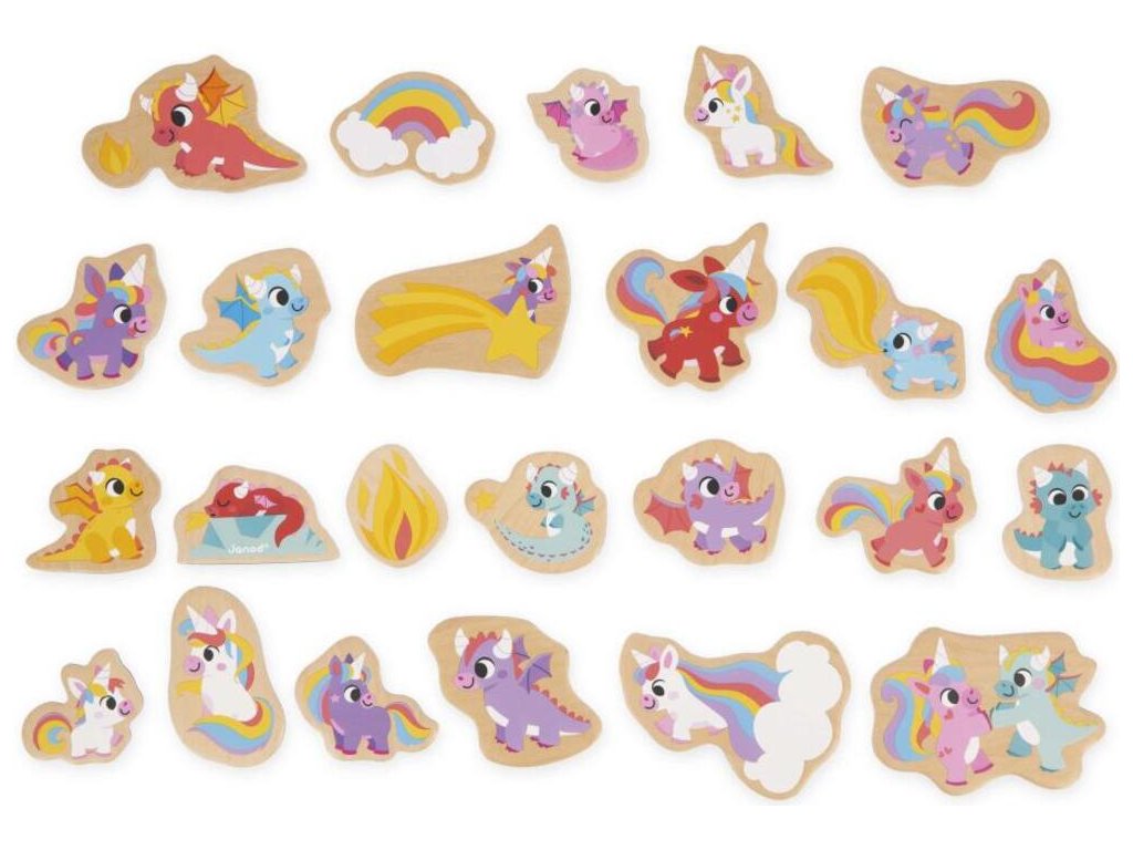 Janod Drevené magnetky pre deti Jednorožce a Draci 24 ks