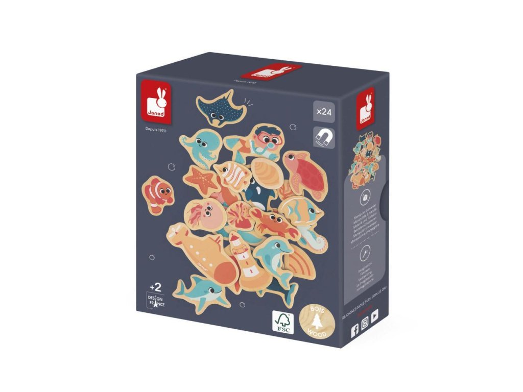 Janod Drevené magnetky pre deti Morský svet 24 ks