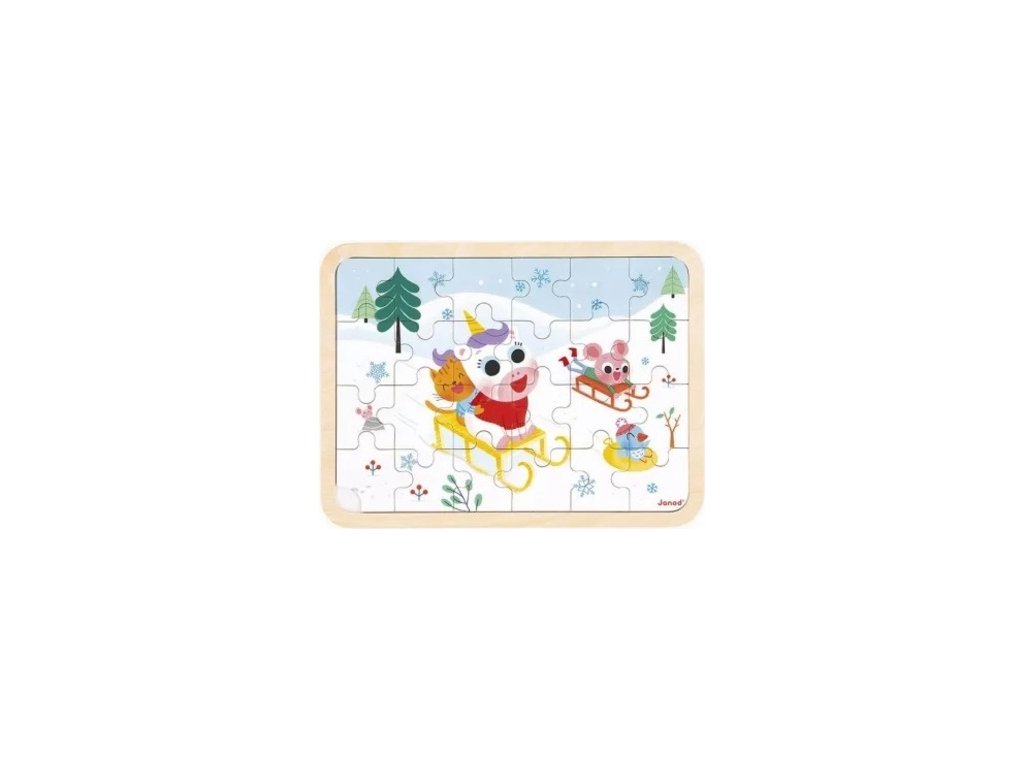 Janod Drevené puzzle s predlohou a hľadanie rozdielov Sánkovačka