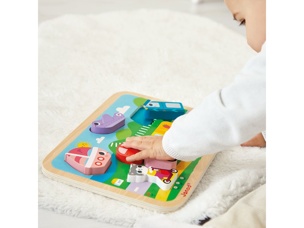 Janod Drevené vkladacie puzzle pre najmenších Dopravné prostriedky Chunky