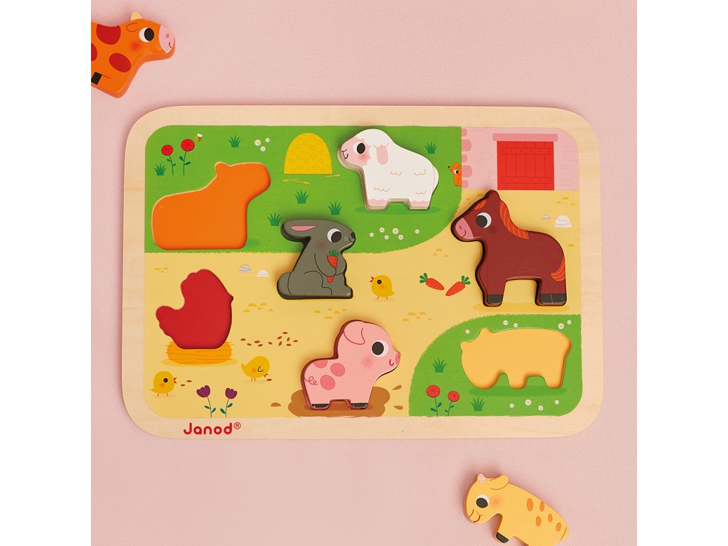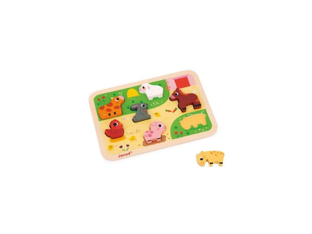 Janod Drevené vkladacie puzzle pre najmenších Farma Chunky