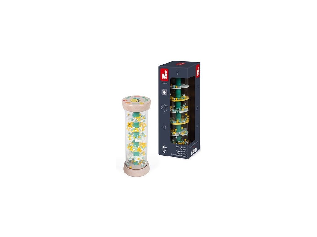 Pri otočení hračky tak, aby jemné korálky padali dolu, si dieťa samo vytvára melodický zvuk padajúceho dažďa.