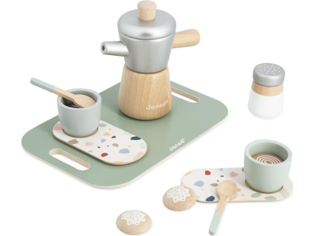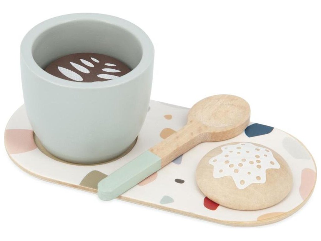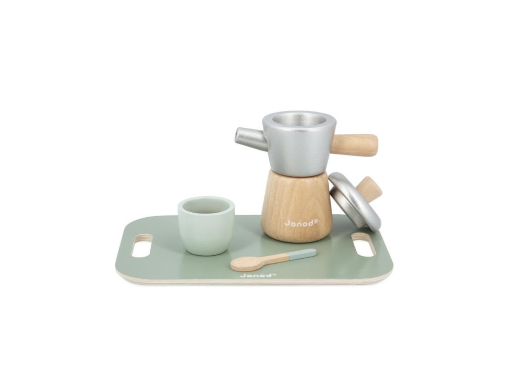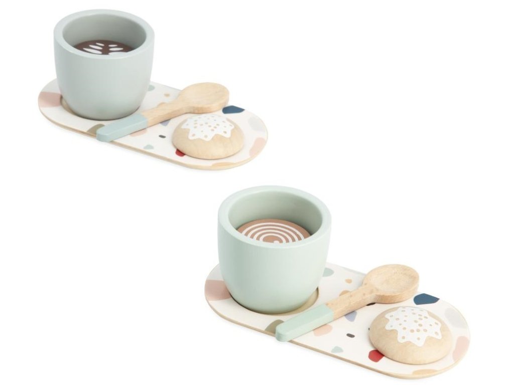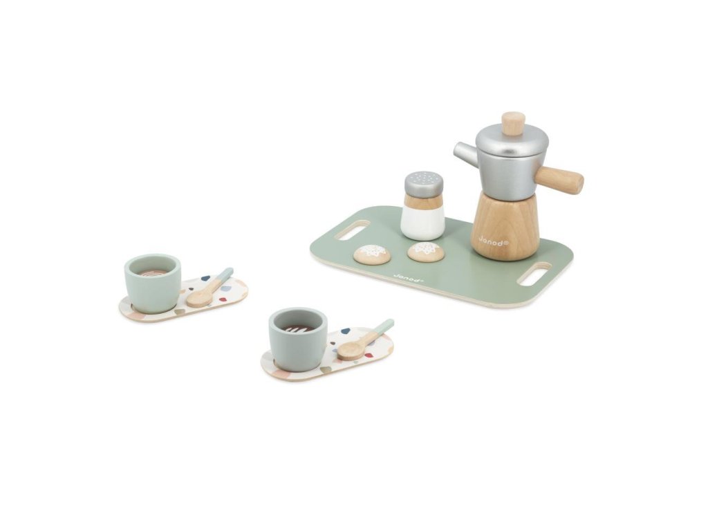 Pretože je dôležité robiť to ako dospelí, táto súprava obsahuje kávovar, 2 šálky, 2 lyžice, 2 podšálky a cukorničku.