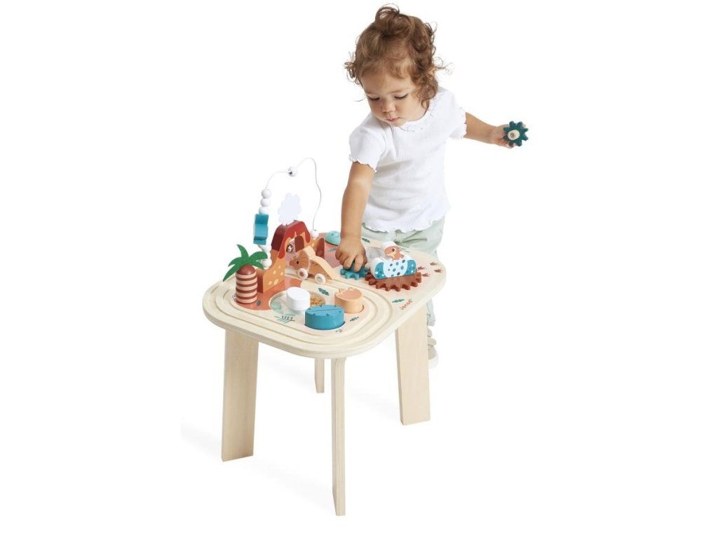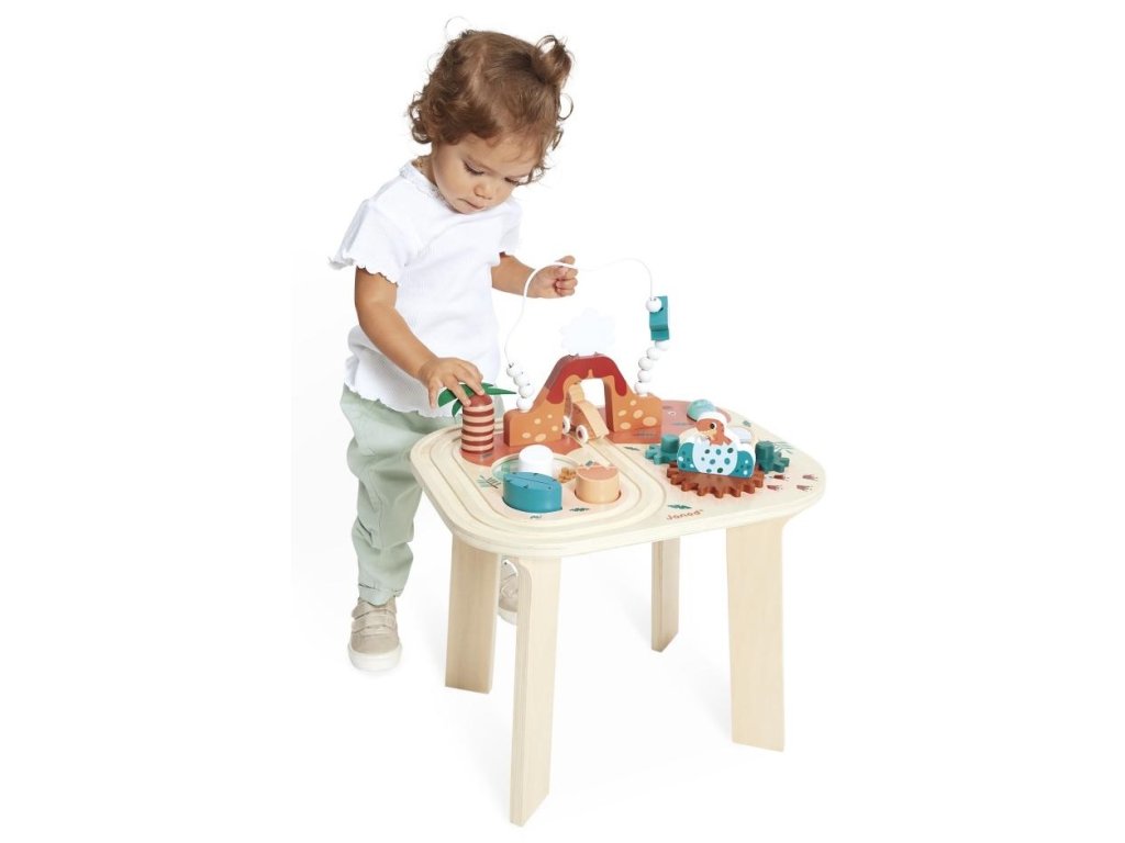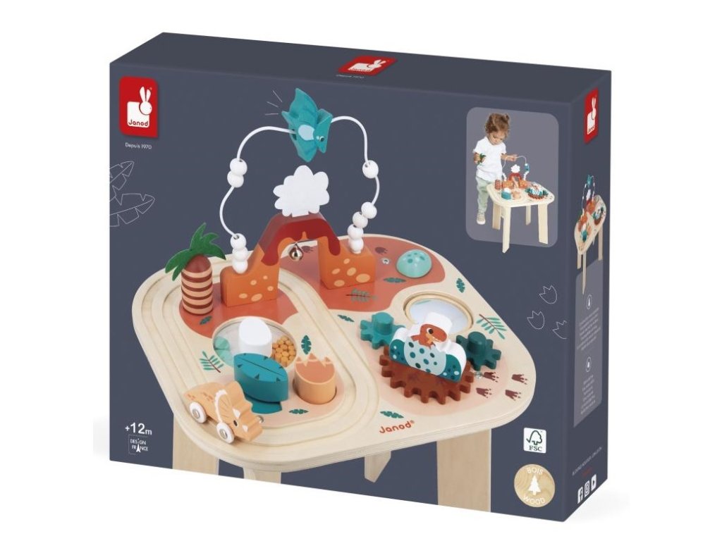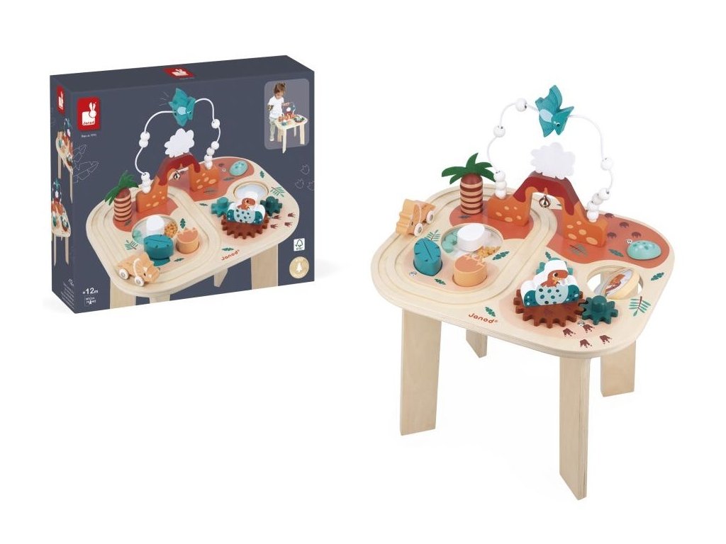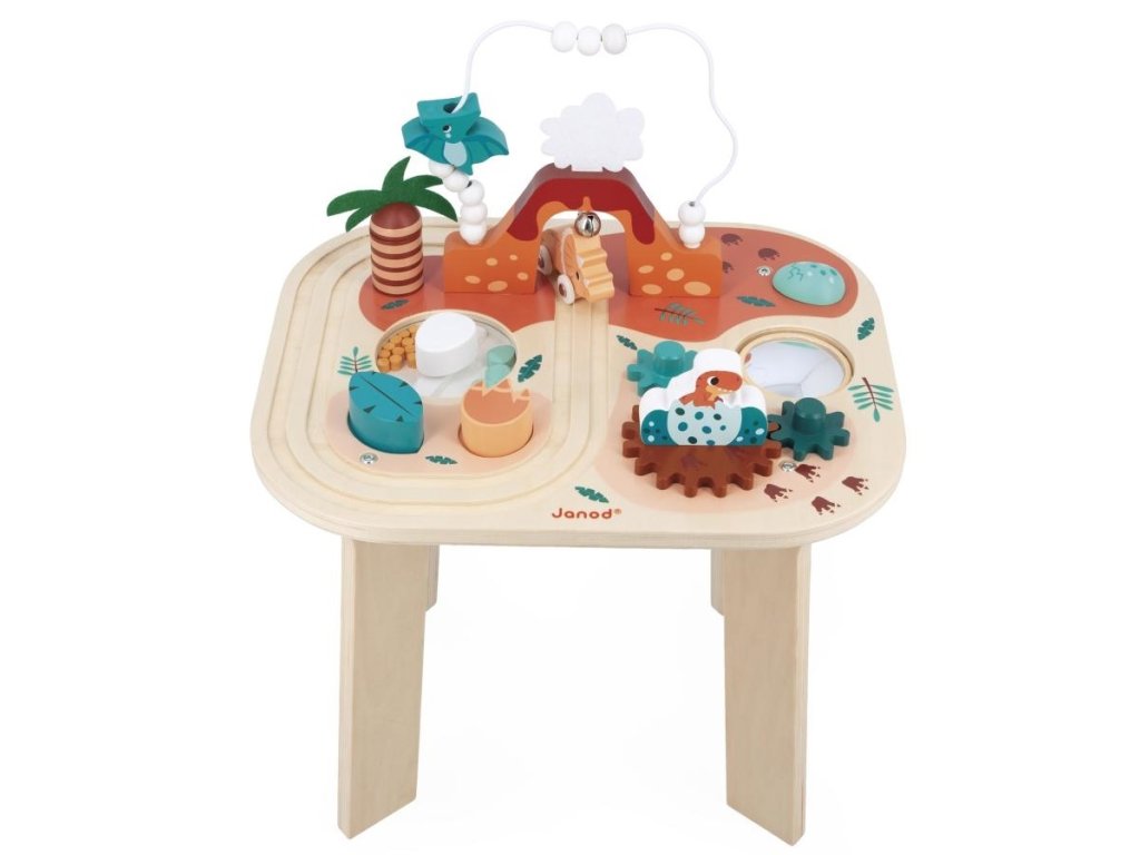 Janod Drevený motorický stolík Dinosaurus s aktivitami Dino