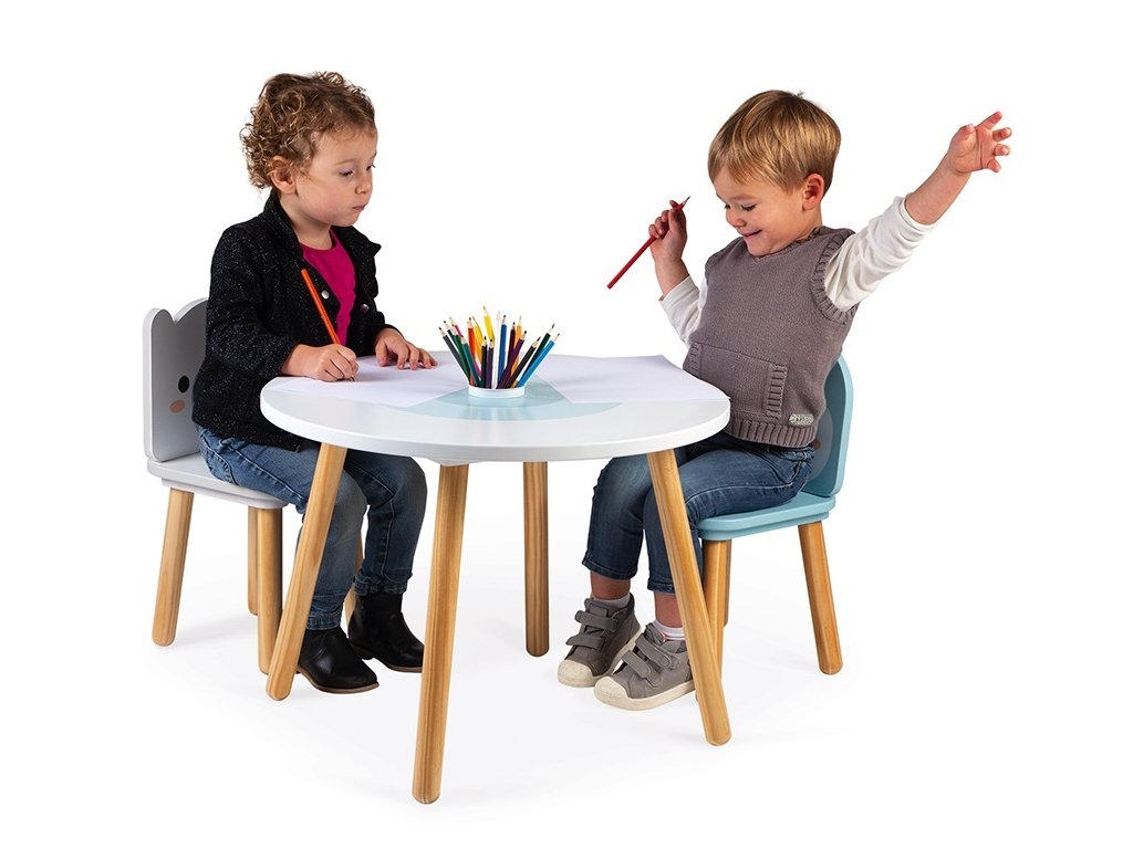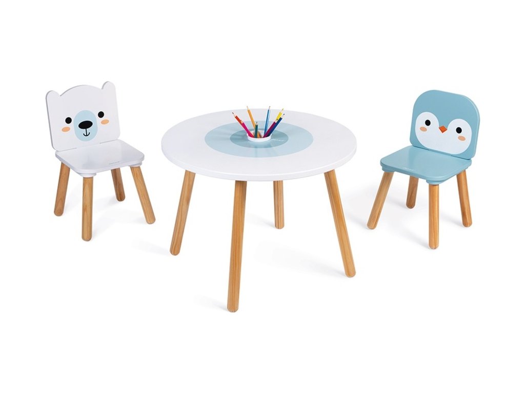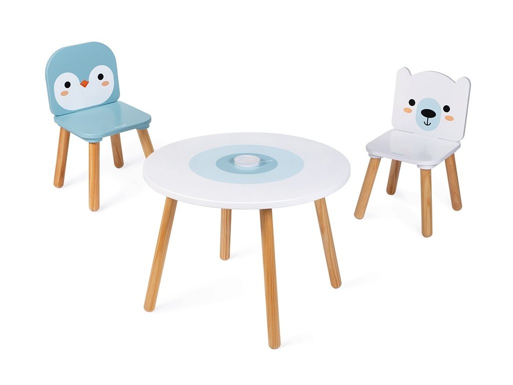 Drevený stolík so stoličkami pre deti Janods prekrásnym motívom polárnych zvieratiek je vhodný do každej detskej izbičky.