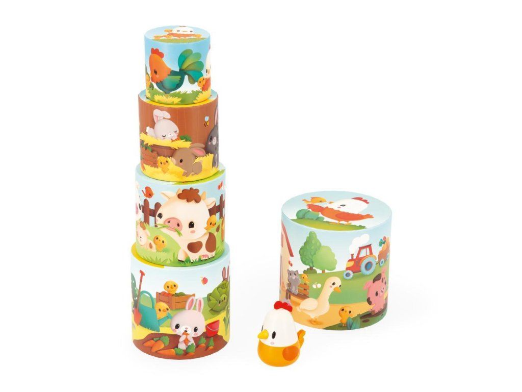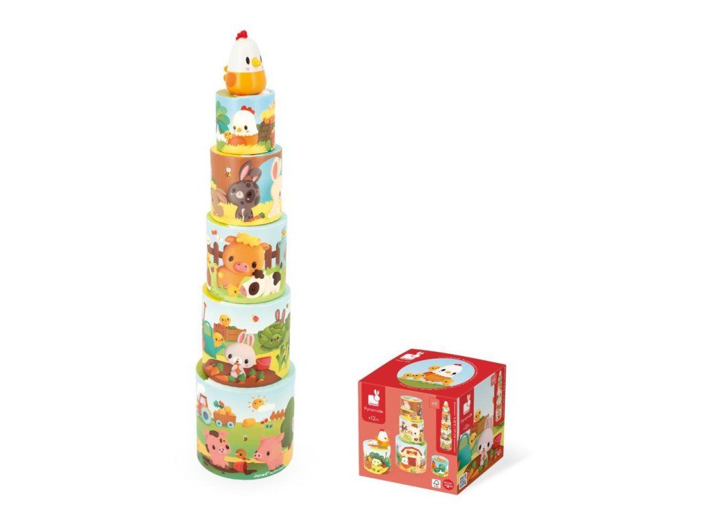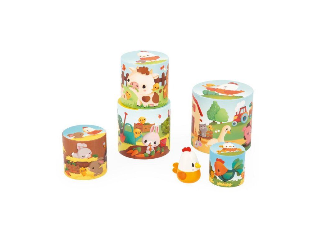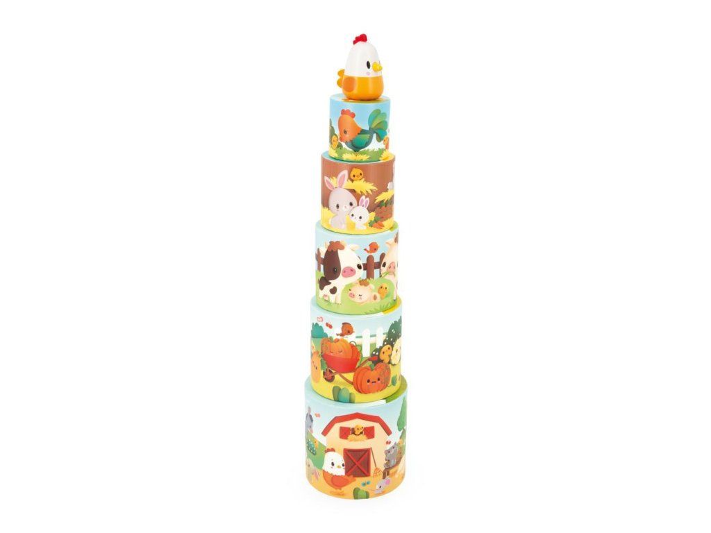 Mláďatá boli poobede vonku, aby sa hrali so všetkými ostatnými zvieratami na farme. Ale je čas vrátiť sa do kurína. Postav pyramídu a pomôž sliepke nájsť jej kuriatka!